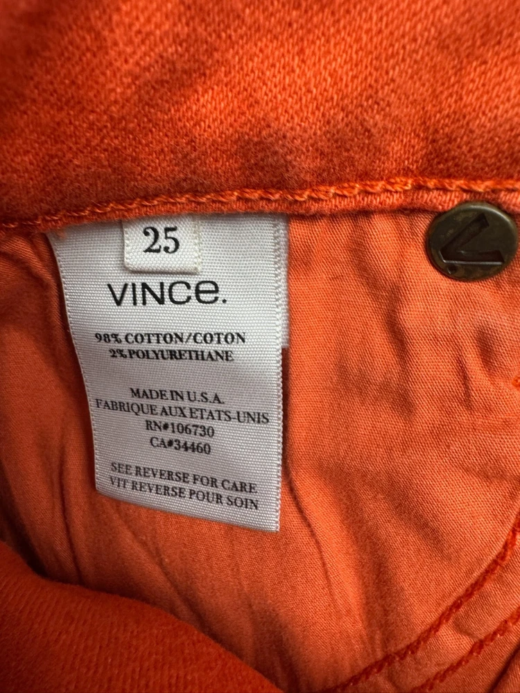 Vince Jeans Women's 25 (W25 x L28) Orange Denim Skinny Leg Mid Rise Great condition. No stains or rips. See images. Ships USPS within 24 hours Monday-Friday