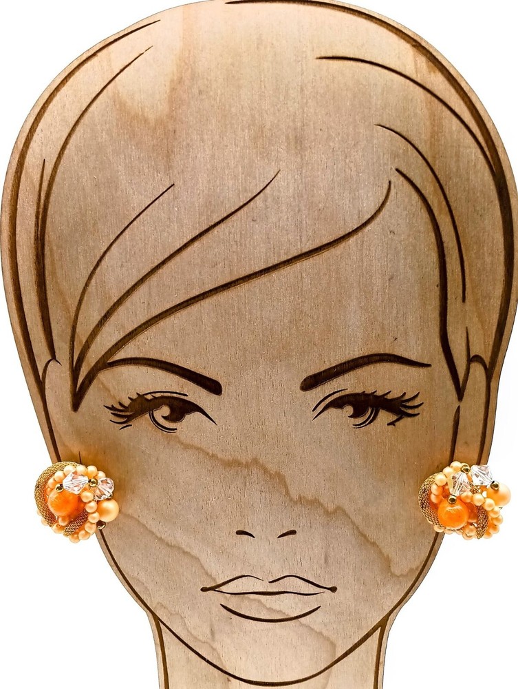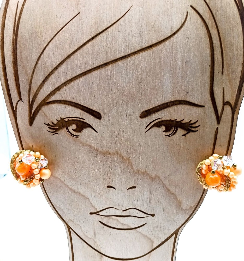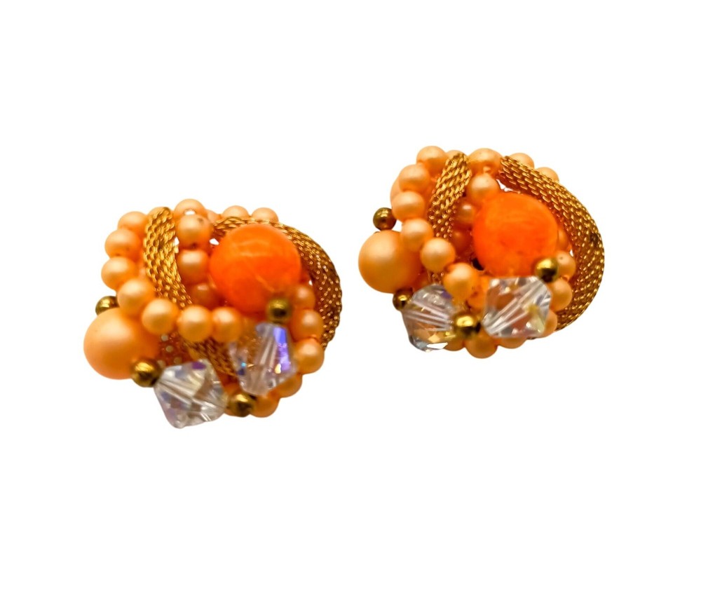 These vintage 1950s clip-on earrings exude elegance and charm with their vibrant orange and gold beading, capturing the essence of mid-century jewelry. • Clip-on closure • Intricate beadwork • Orange and gold tones • Vintage 1950s style • Mid-century design Size: Womens OS Condition: Pre-Owned Good