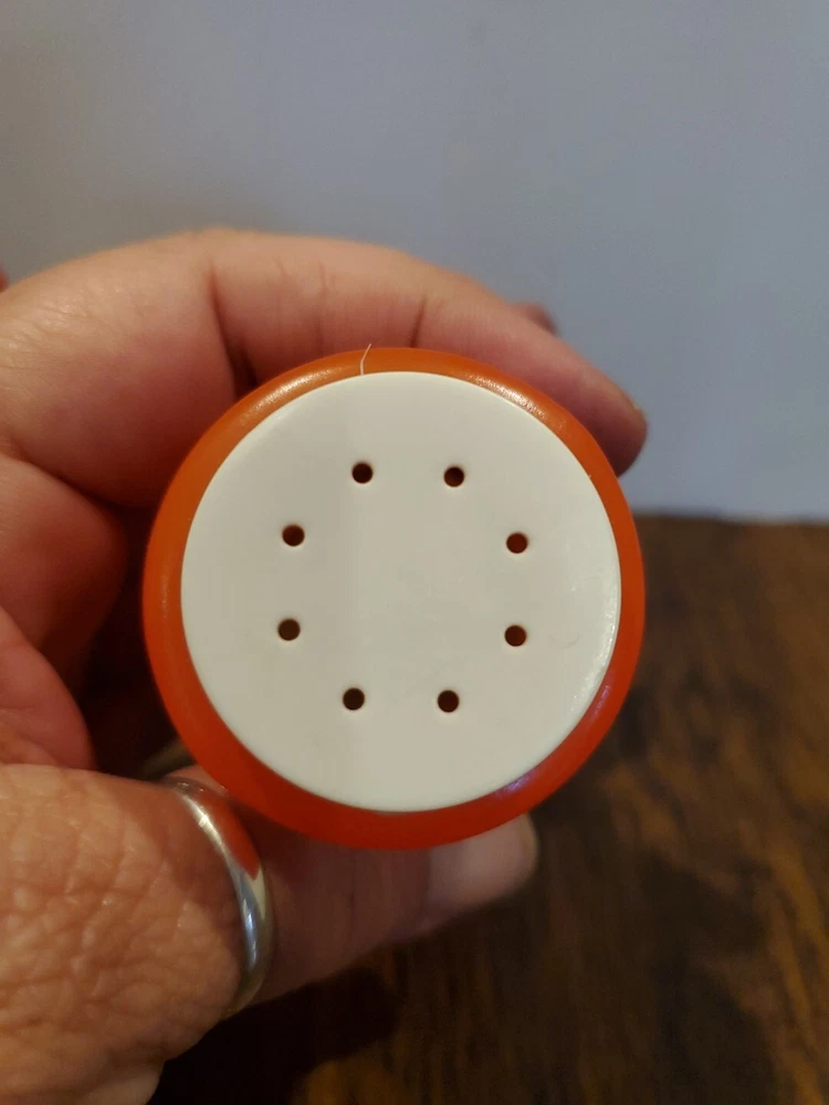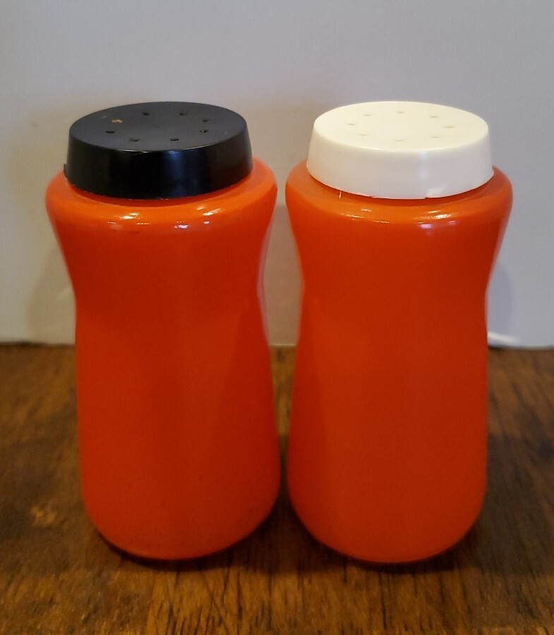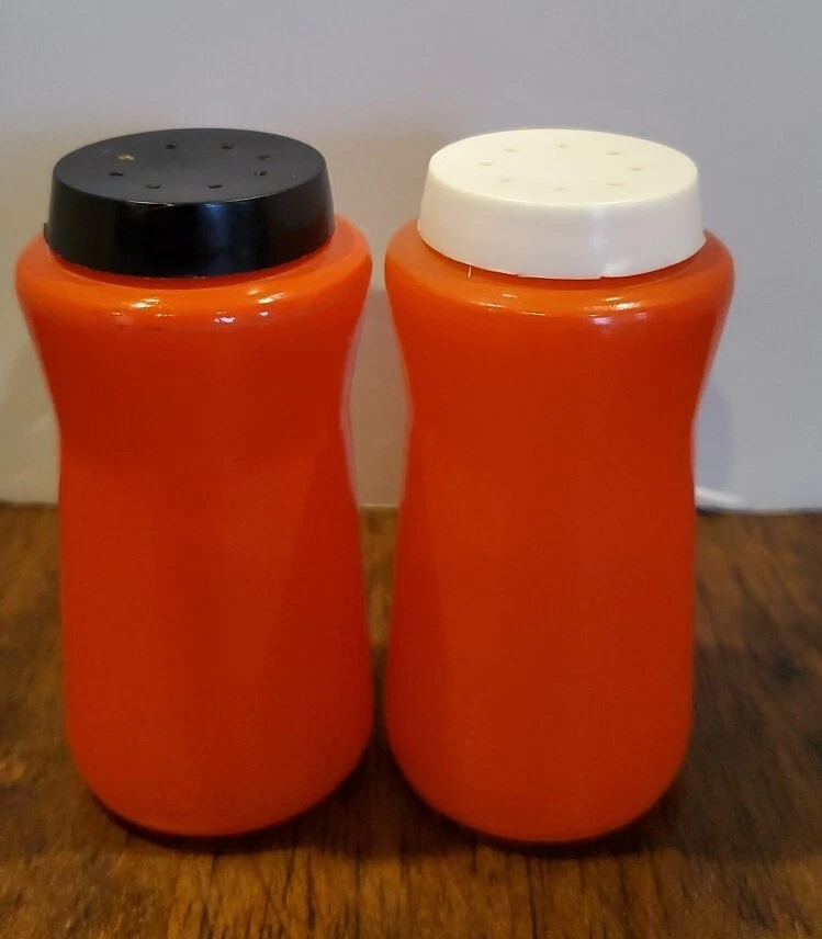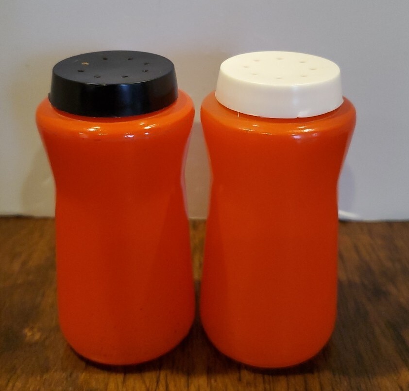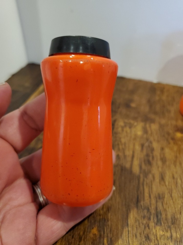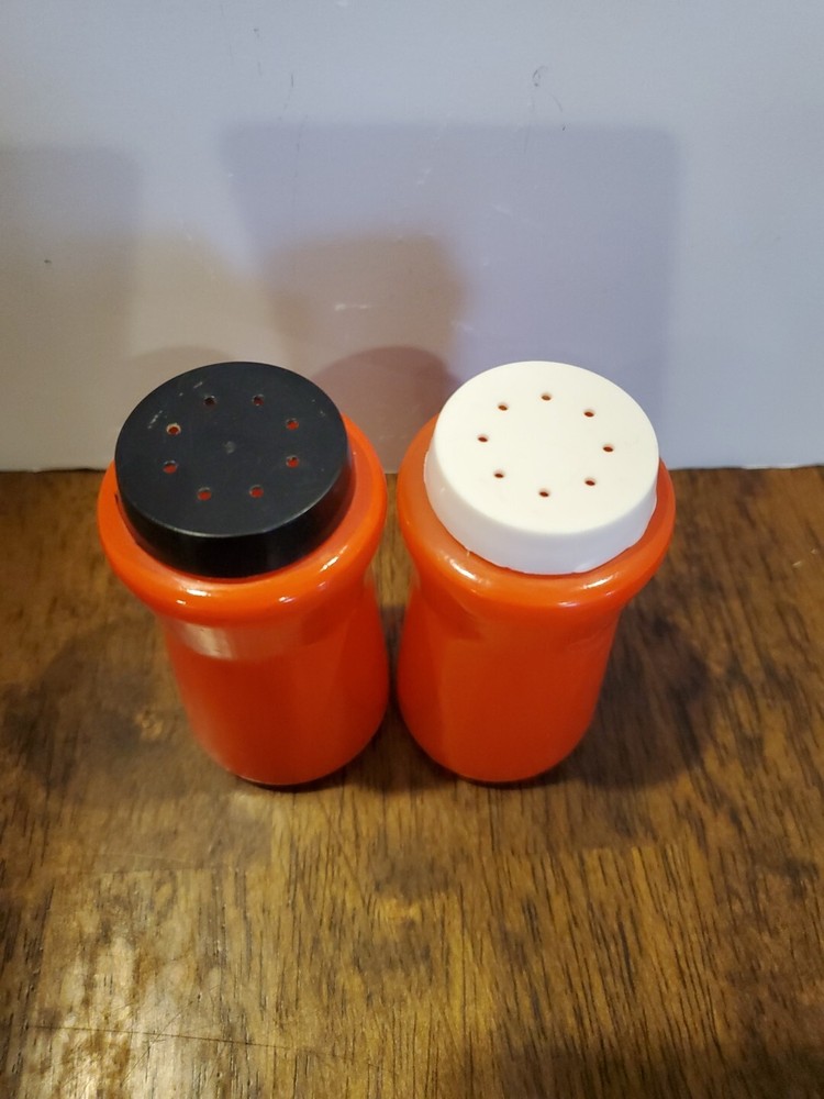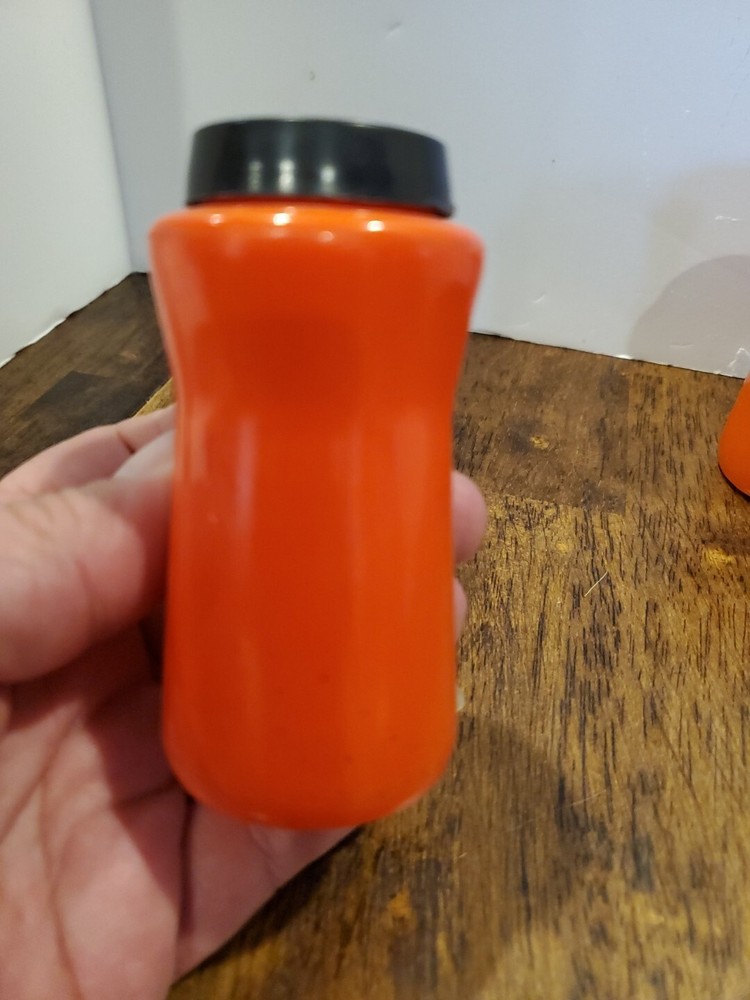 This is a vintage set of Durkee orange glass salt and pepper shakers from the 1950s. The set includes two shakers with tops and has a mid-century style. The shakers are cylinder-shaped and have a height of 3.5 inches and a width of 1.75 inches. They are made of glass and have no pattern. The shakers are suitable for all occasions and are compatible with salt and pepper. The brand is Durkee and the set is an original from the 1950s. Estate treasure sold as found. Some wear is visible no chips or cracks. PLEASE CHECK PICTURES CAREFULLY FOR COMPLETE CONDITION DETAILS. PLEASE DON'T BE AFRAID TO MAKE OFFERS!πππ All items are pre-owned unlees stated otherwise and sold as is . I will point out any noticed flaws in description but please check pictures carefully. All items are hand picked for their unique style, beauty or usefulness. We have a smoke free home but we do have pets. Don't worry they don't smoke either.π. I want you to love your purchases and get exactly what you are expecting so please check pictures for condition detail. Remember lots of these items are rescued from estate or rummage sale so I can't Guarantee what environment they previously lived in. If you have any questions please message me prior to purchase. Thank you for looking and for shopping resale. ππβ»οΈReuse , Recycle, Repurpose