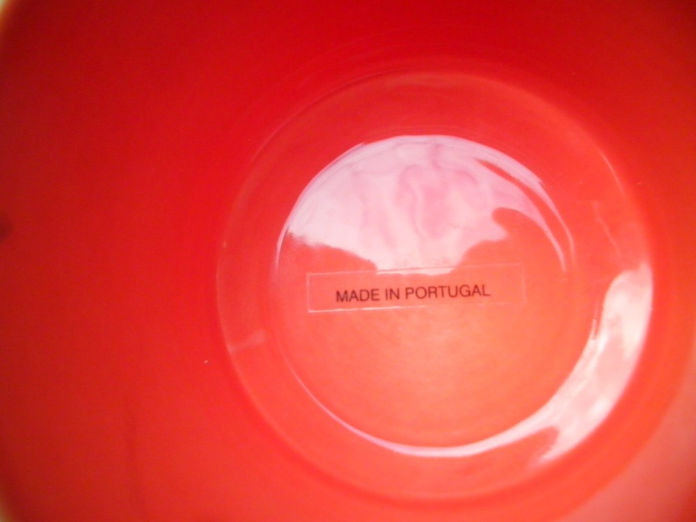 Vintage 1960s -70s MCM Mid Century Modern Portugal Large Footed Orange Bowl. Used but in excellent condition, no issues. I believe this bowl is from the 1960s or 1970s. Very heavy, the box will weigh about 4 pounds.