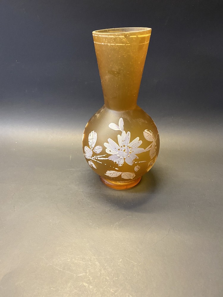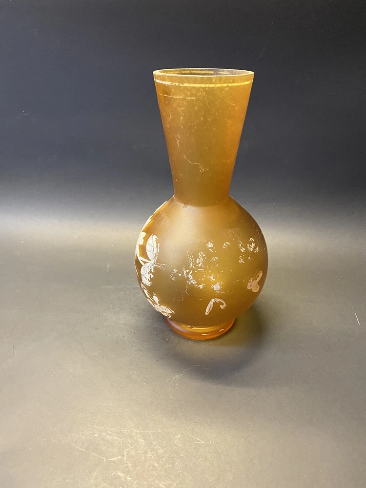 For sale is a Vintage 1960s Orange Frosted Glass Hand Painted Floral Mid Century Vase. Overall this item is in good condition with minimal wear and tear. - Pictures are worth 1,000 words so please view the photos for more details about the item. - All of our items have been in storage for 30+ years so we always recommend a good cleaning! - All listings are sold as is with NO returns. - Please do not hesitate to contact us and ask questions. - Please contact us before you leave negative/neutral feedback.