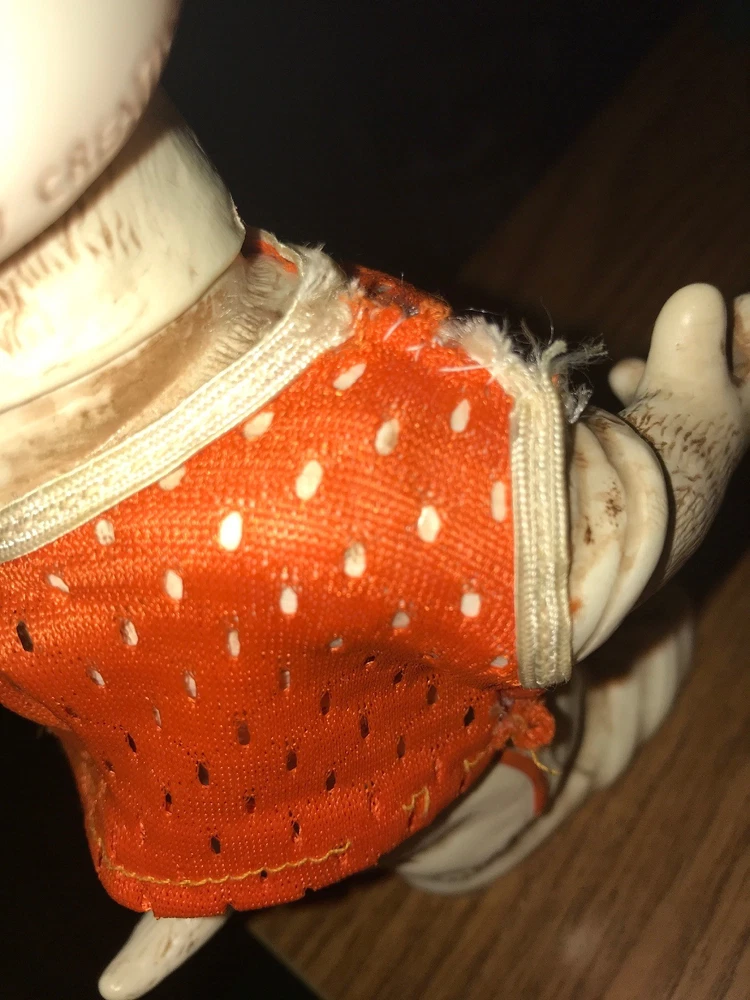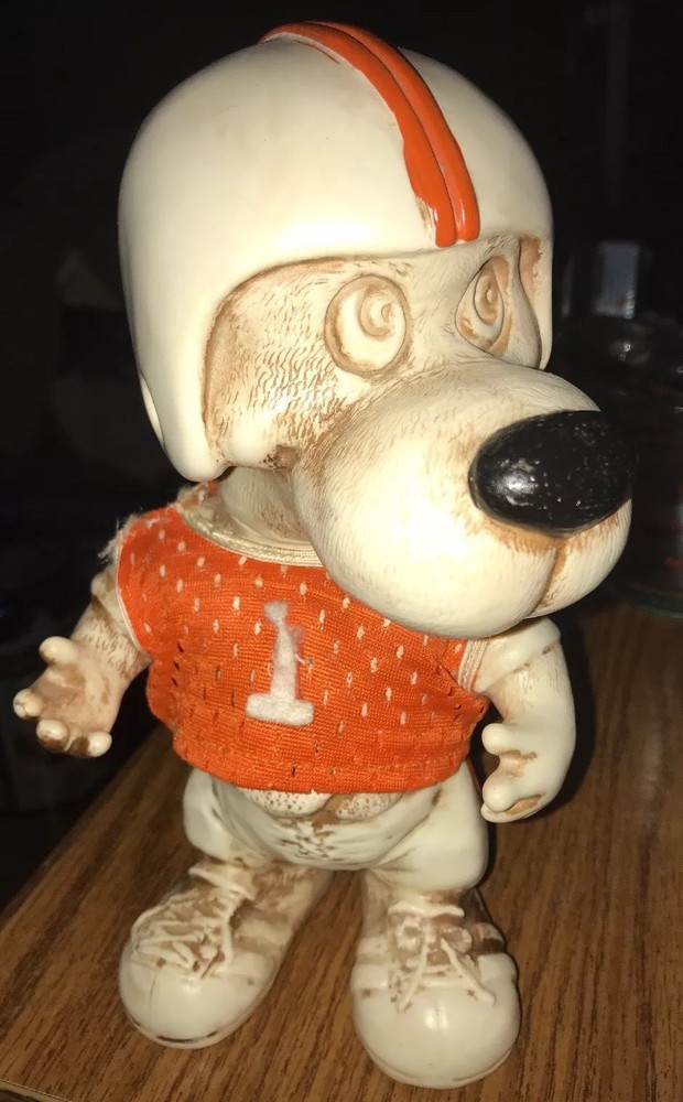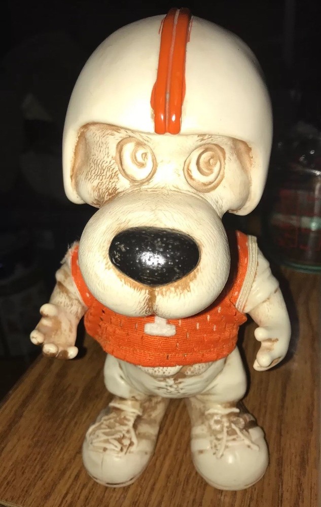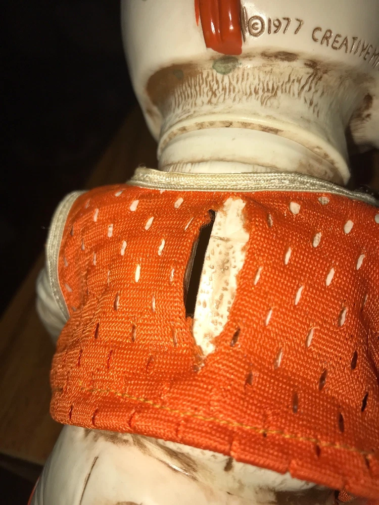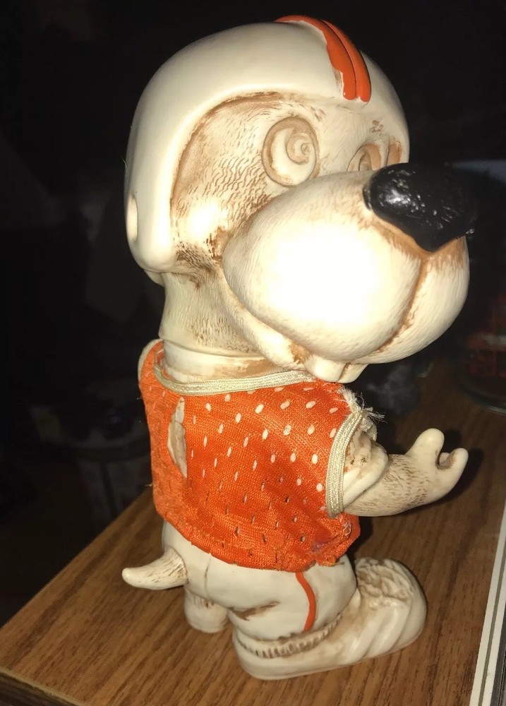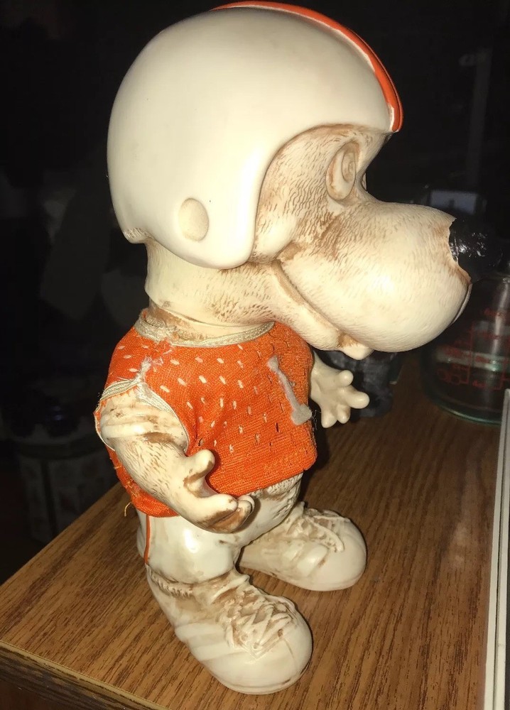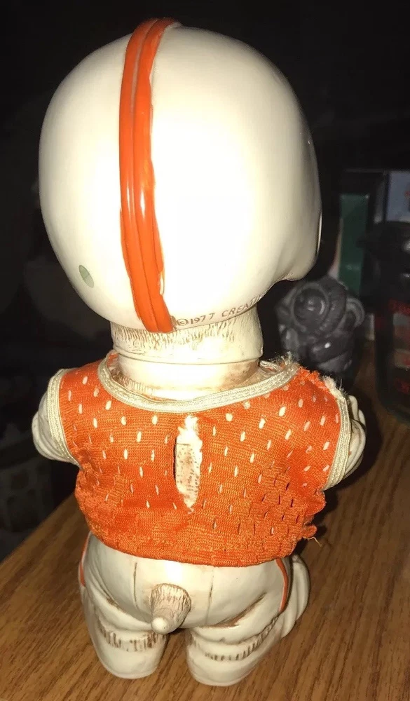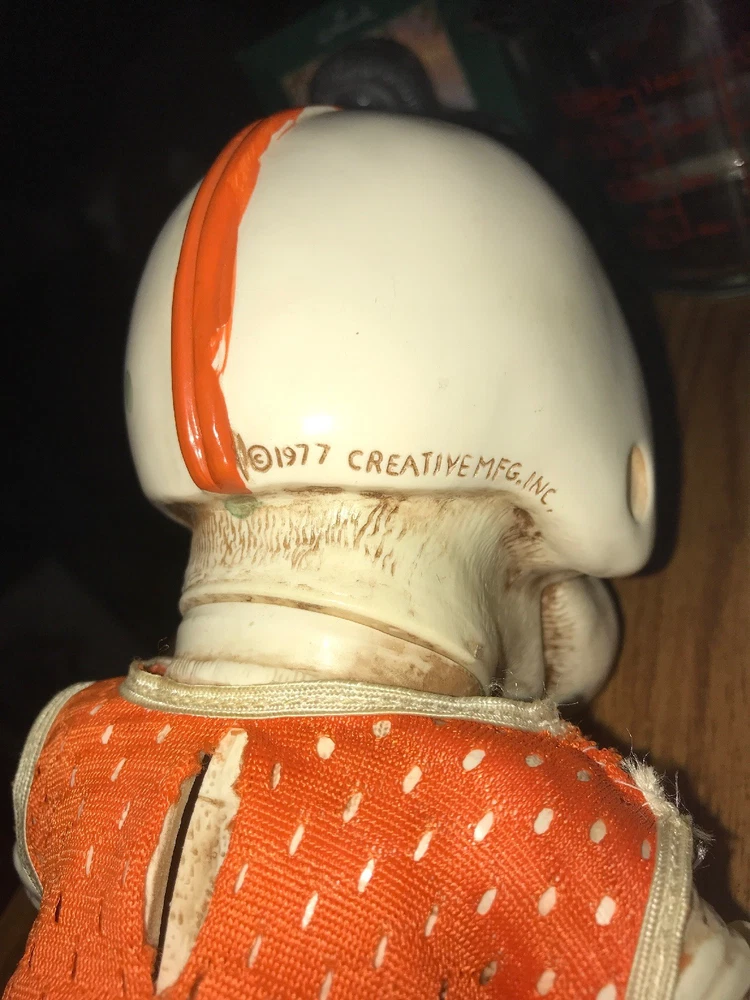 Around 8.5” tall & 5” wide You can turn his head Jersey had been repaired Free shipping to 48 lower states only...