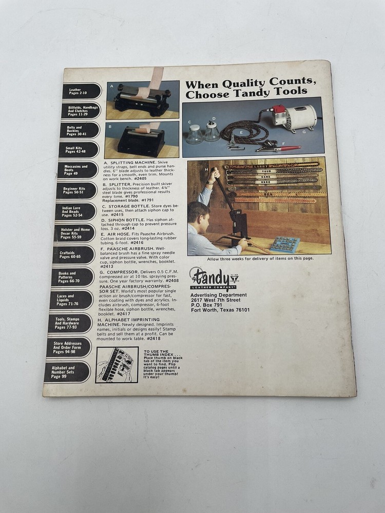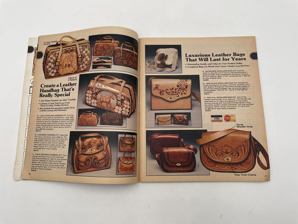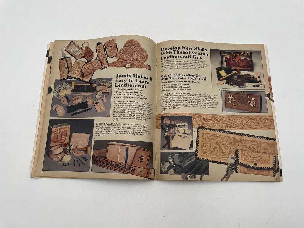 This vintage Tandy Leather catalog is a fantastic find for leathercraft lovers! Packed with creative ideas from the late '70s, it’s in good shape with some expected wear—perfect for inspiration or collectors. The photos give a clear idea of its condition. A great piece of crafting history!