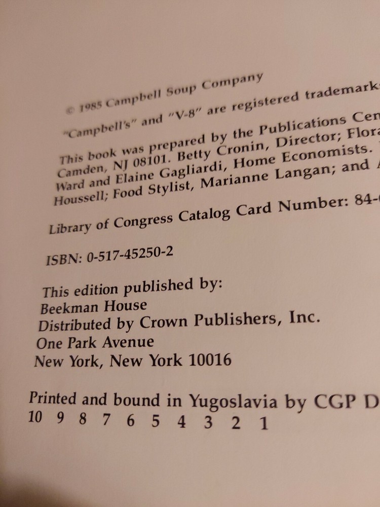 Vintage 1985 Campbells Creative Cooking With Soup Hardcover USA. Measures 7 1/4" x 10 1/4" and is pre-owned in very good condition. Shipped with USPS Media Mail.