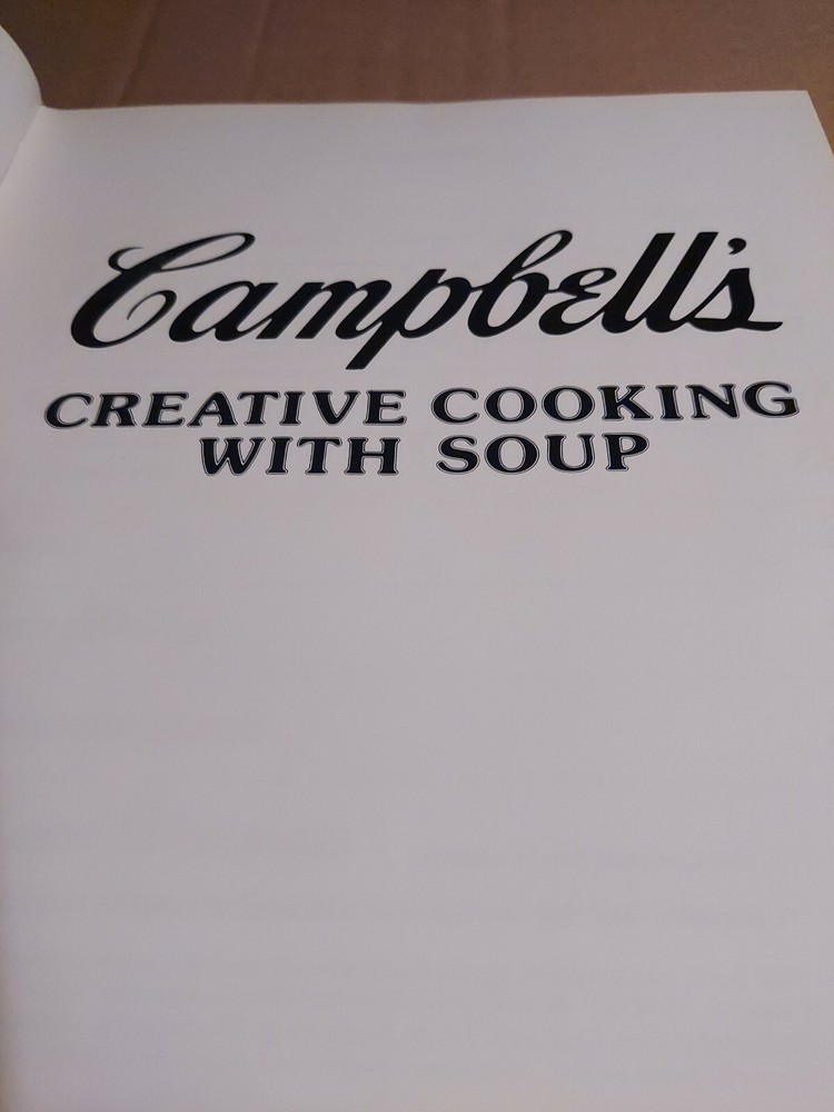 Vintage 1985 Campbells Creative Cooking With Soup Hardcover USA. Measures 7 1/4" x 10 1/4" and is pre-owned in very good condition. Shipped with USPS Media Mail....