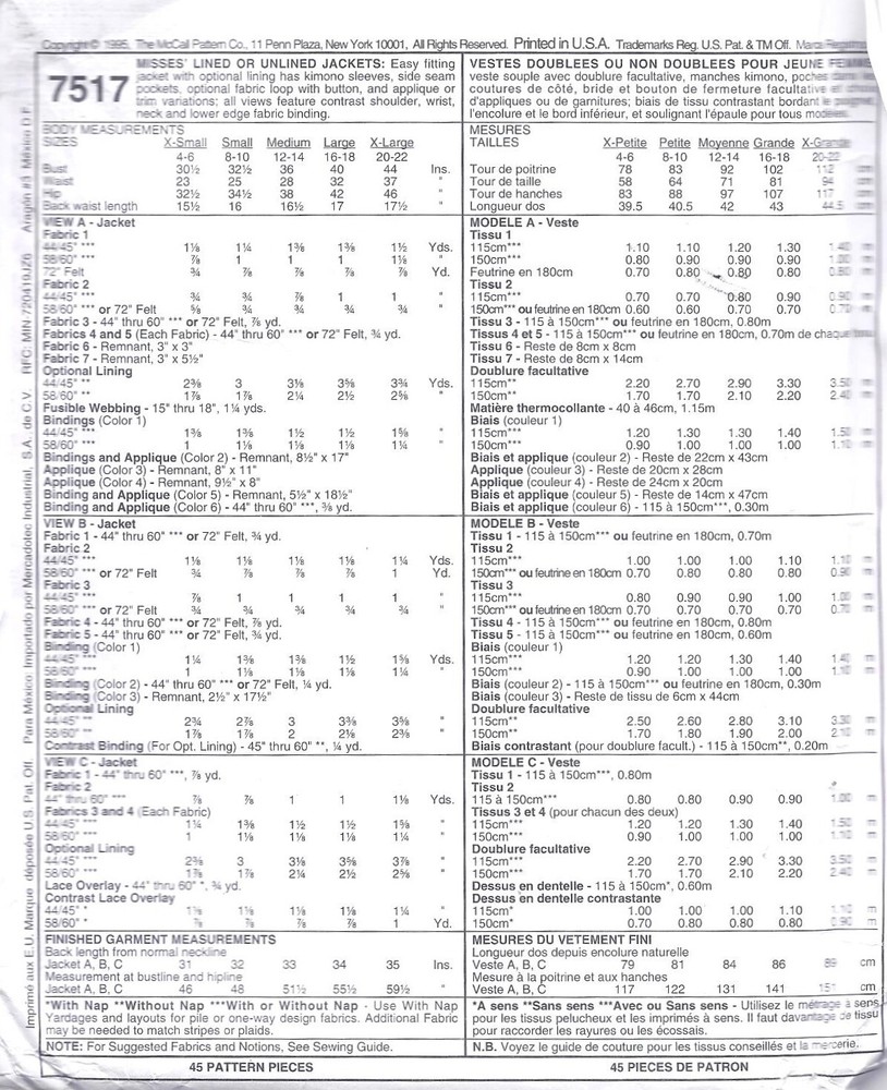Here is a vintage 1990's pattern from McCall's to make blazers in different styles. This is for vintage size 12-14. Please see the second photo above for measurements to ensure a proper fit. This pattern is uncut. The pattern envelope has lots of bends and some wear and from age and storage, the pattern pieces are not harmed.