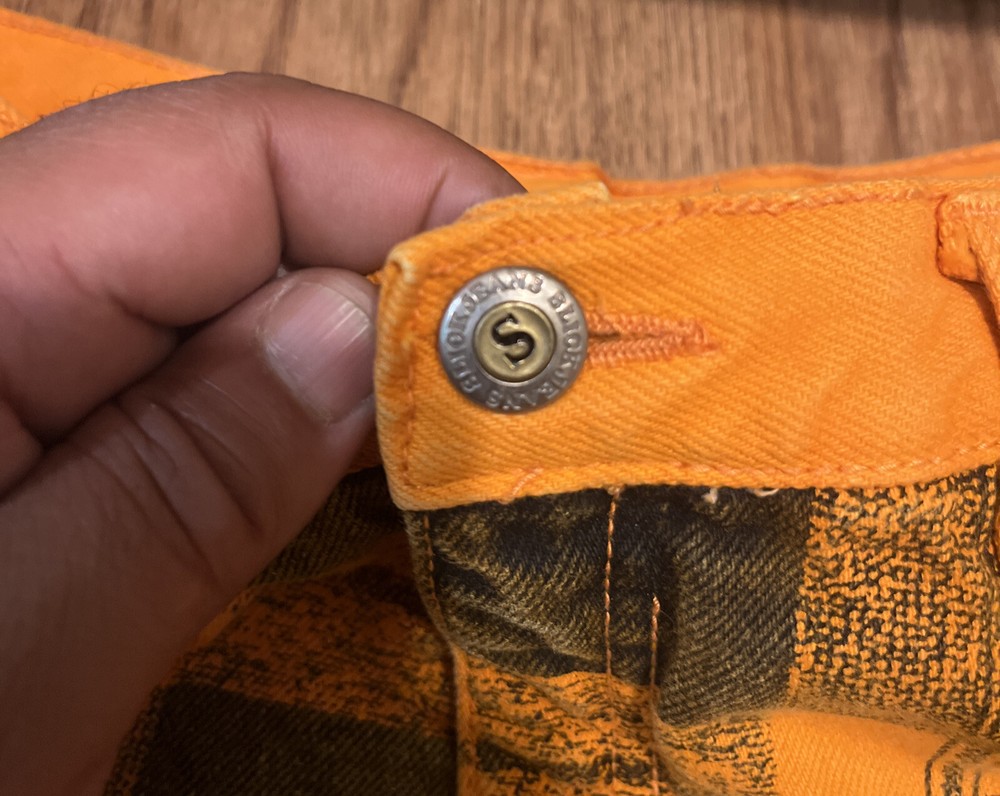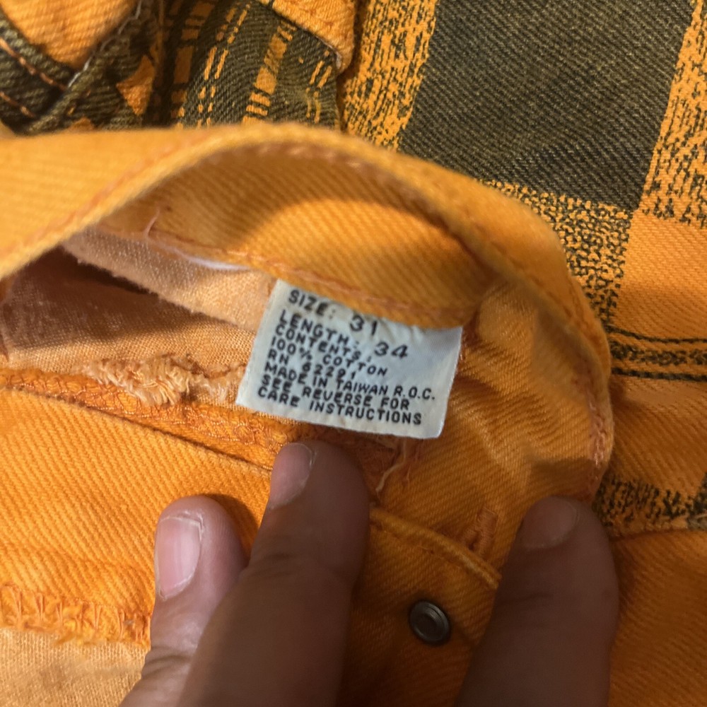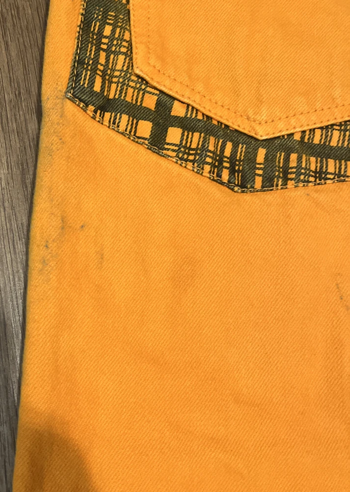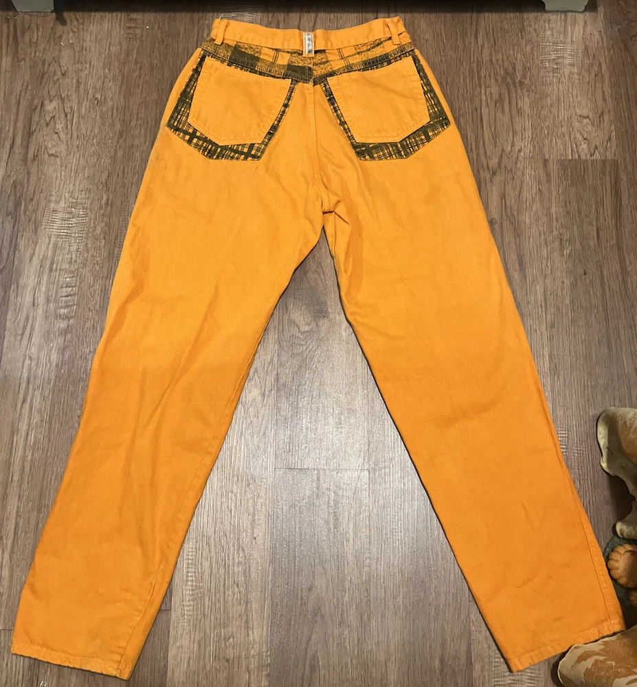 Vintage 1990's SLICK Orange Denim Mid-Rise Grunge Jeans 31w X 34l Euc Rare Read. Excellent used condition only thing is need to be clean as shown has like blue stains