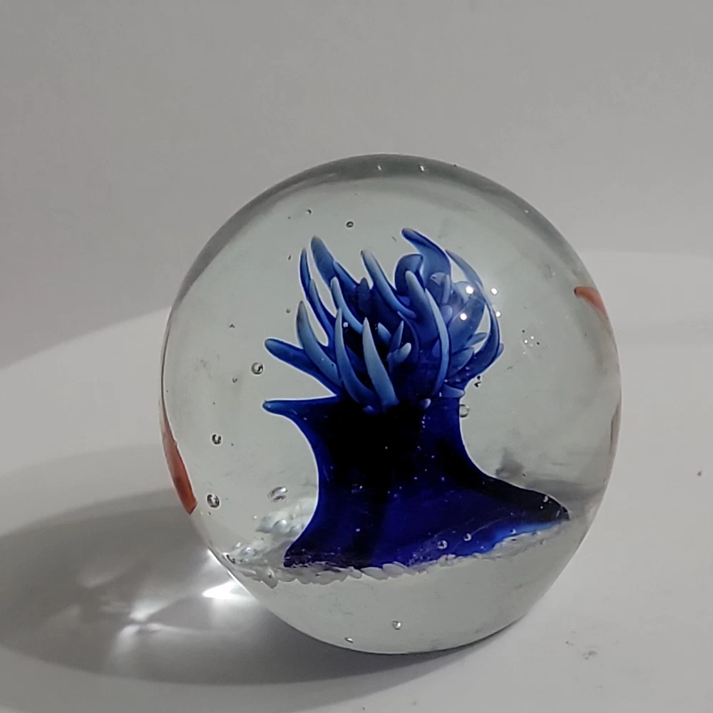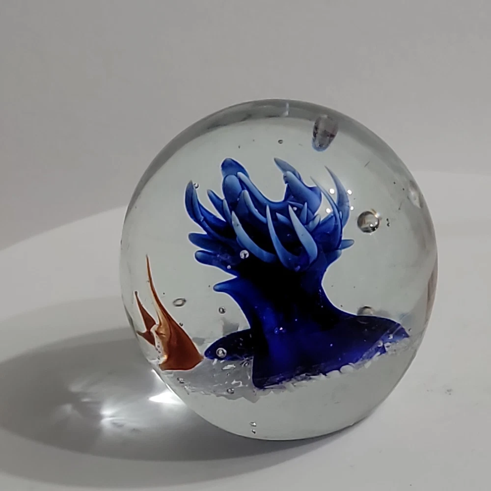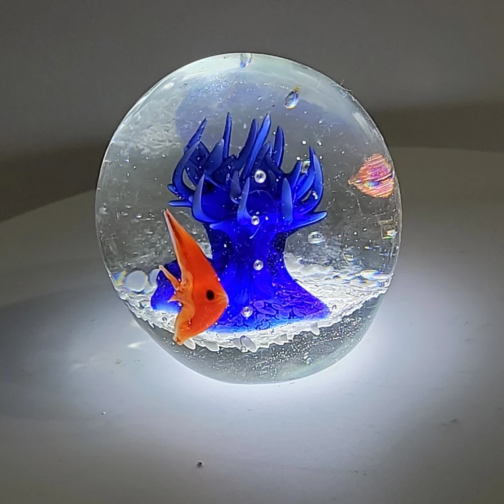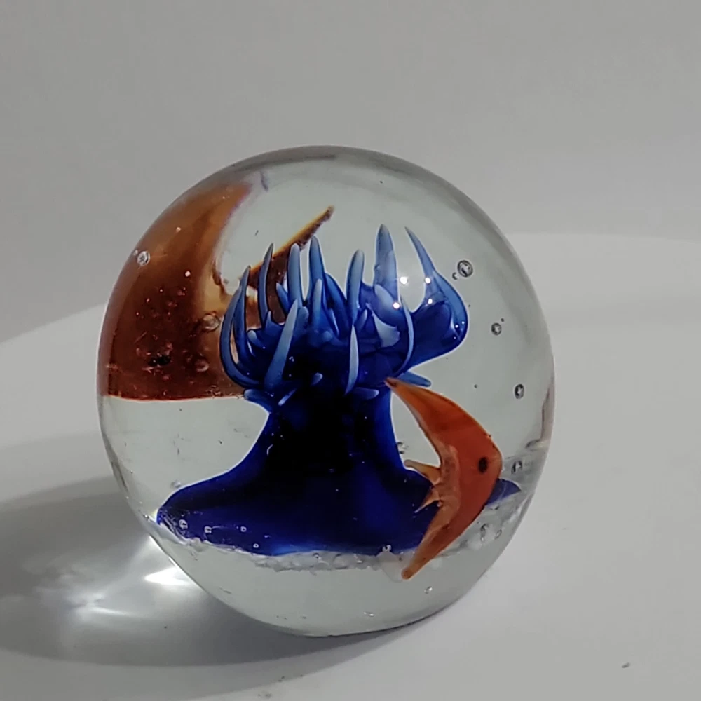 Vintage 2 Orange Angel Fish Glass Paperweight Focus swimming around Blue Coral in a sphere Please join us for many other wonderous finds like this one at Southern General Store. We are constantly adding to our inventory to include something to interest anyone and everyone.