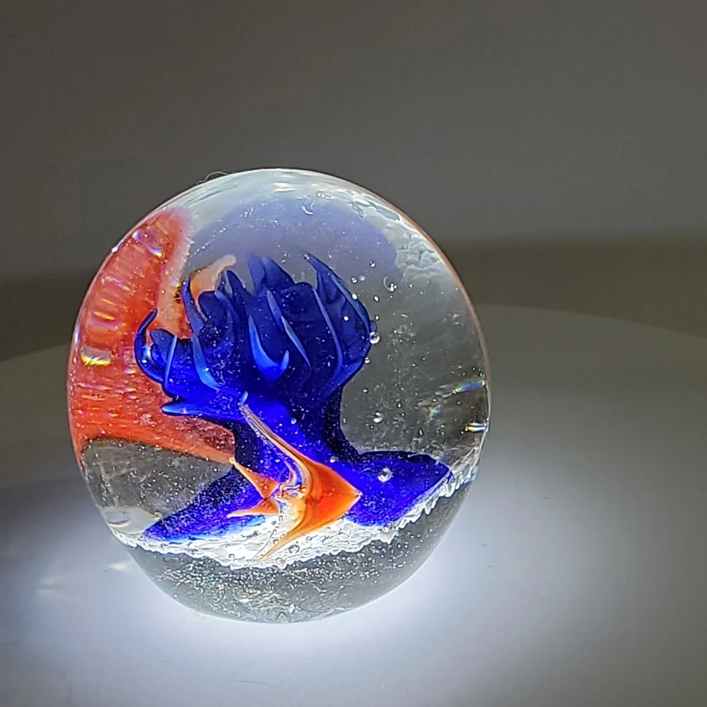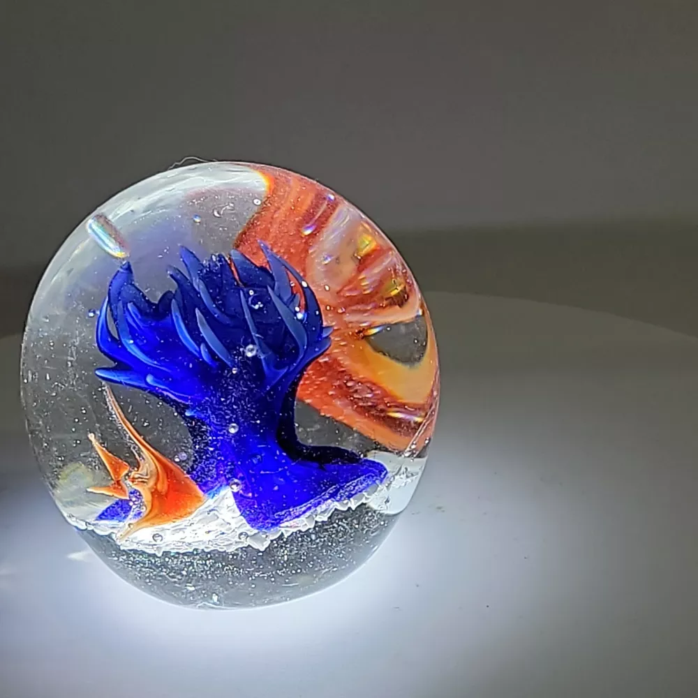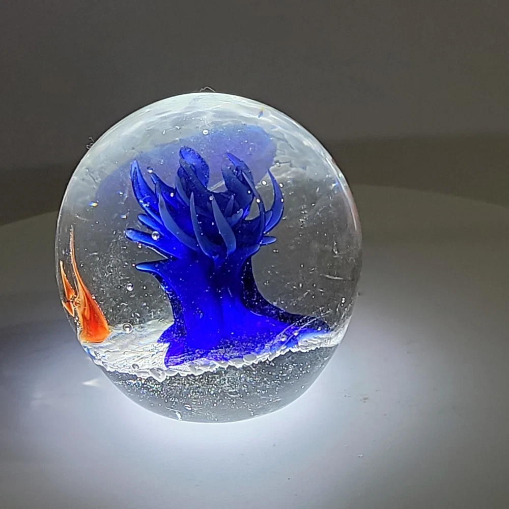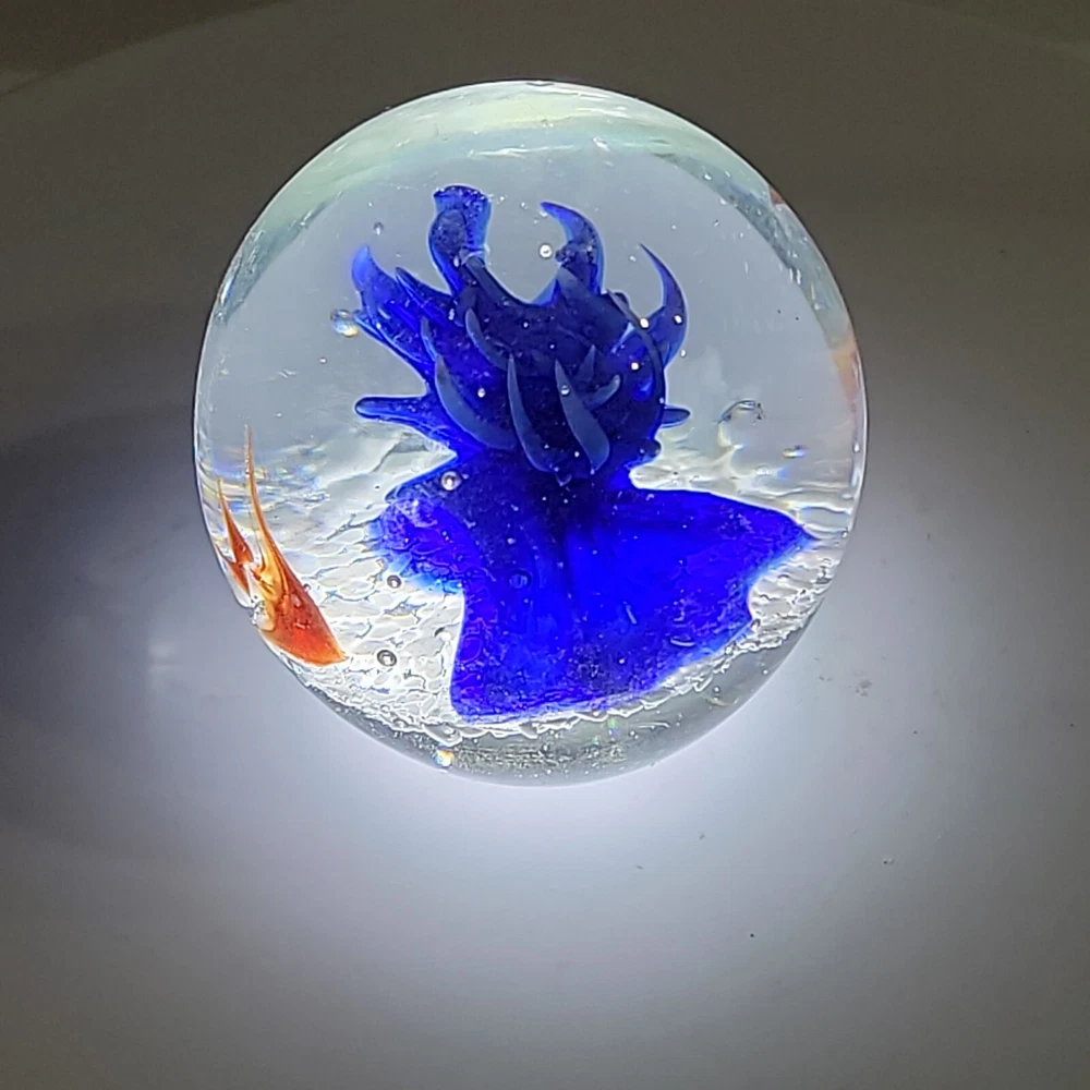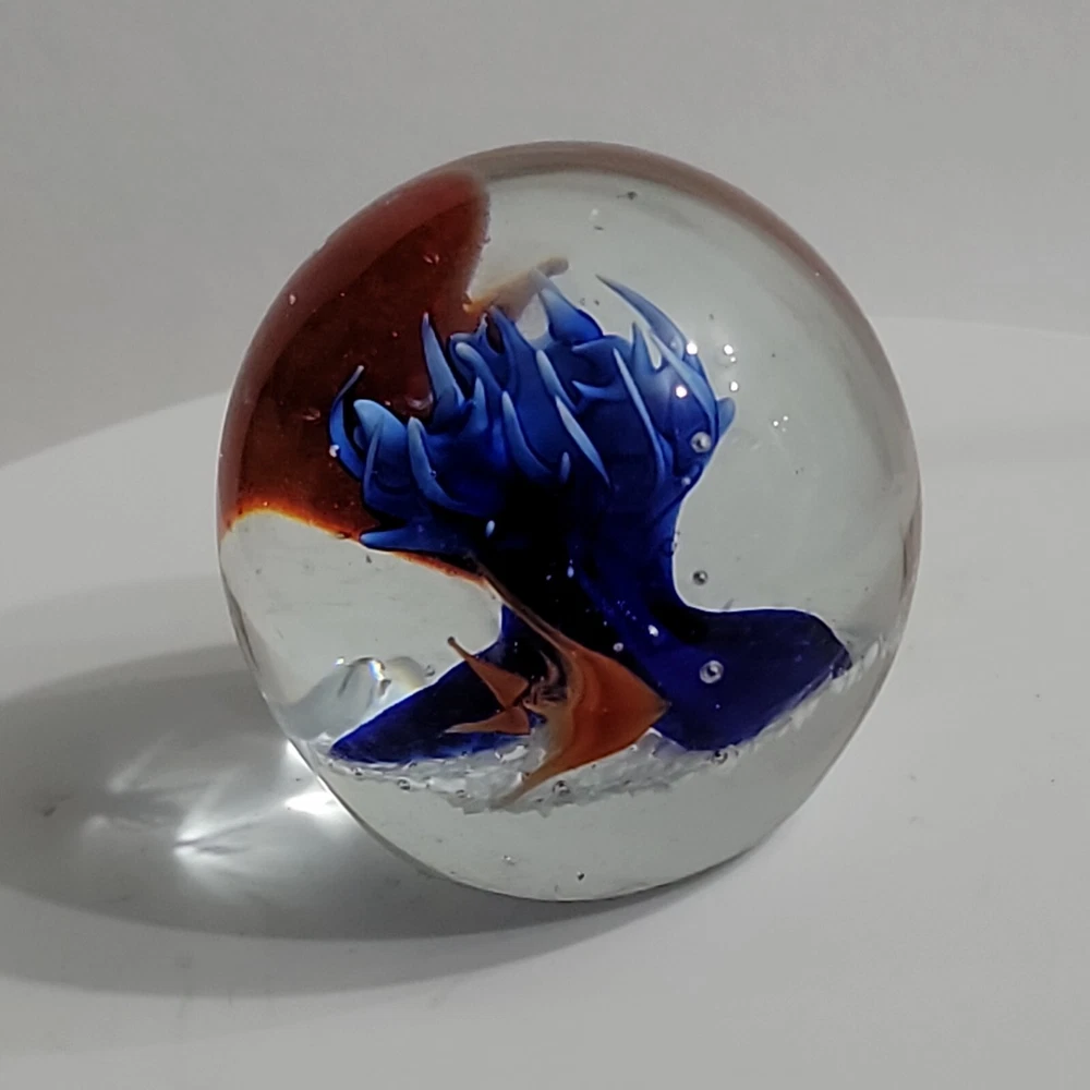 Vintage 2 Orange Angel Fish Glass Paperweight Focus swimming around Blue Coral in a sphere Please join us for many other wonderous finds like this one at Southern General Store. We are constantly adding to our inventory to include something to interest anyone and everyone.