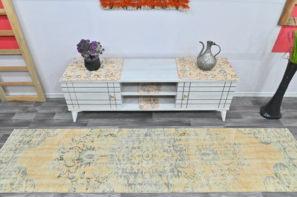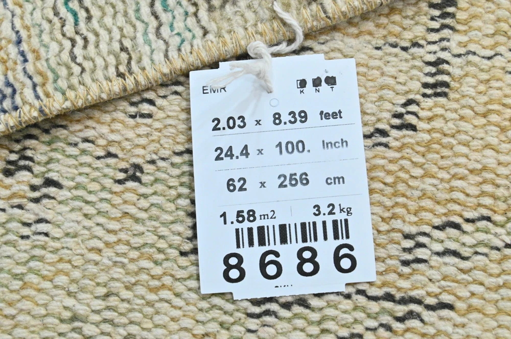 This Oushak Turkish Vintage Area Rug is a one-of-a-kind piece hand-knotted and handwoven by skilled artisans using pure wool and natural tones to create a stylish Oriental design in Beige. It is in excellent condition, having been professionally cleaned, and is ready for delivery. DETAILS: This rug is part of our collection of vintage hand-knotted rugs, most of which were woven in the 1950s, 1960s, and 1970s. ➛Size: 2'03 x 8'39 feet (62 x 256 cm, 24 x 100 inches) - SKU:8686 ➛Materials: Hand-knotted with natural wool and cotton ➛Availability: Unique item, only one in stock ➛Condition: Professionally cared for, in excellent condition ➛Shipping: Free international shipping with expedited air delivery ➛Lead time: Ready to ship in 1 day ➛Bonus: Mini gift rugs included in the package Please note that while we do our best to accurately represent the colors of our vintage rugs, there may be slight variations due to differences in screen color, contrast, and brightness. We offer a 14-day return policy for a full refund. Please contact us for wholesale orders. If you have any questions, please feel free to contact us via eBay chat