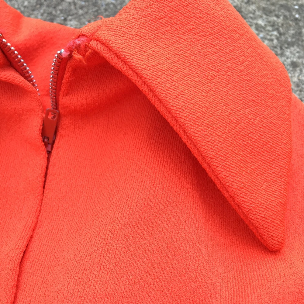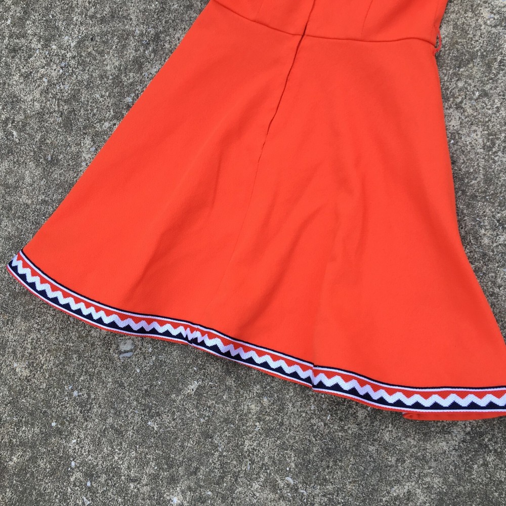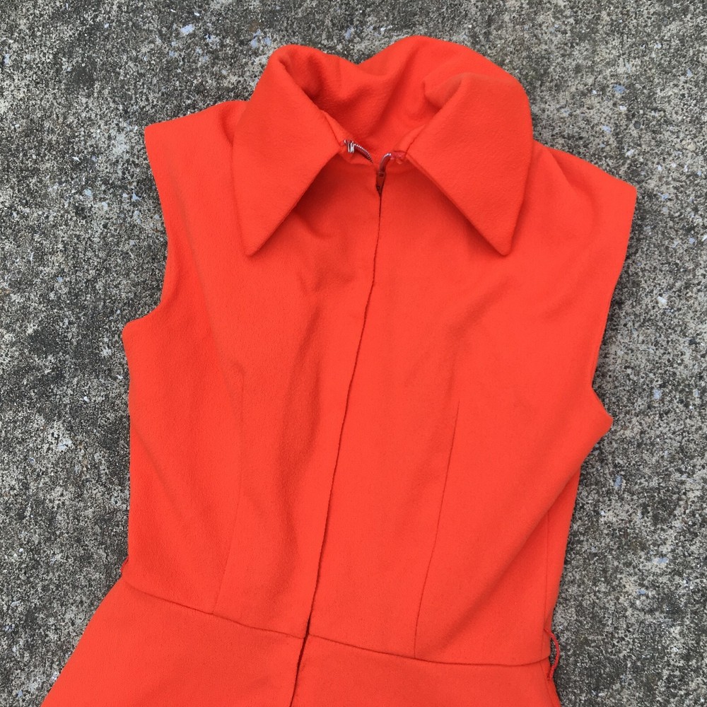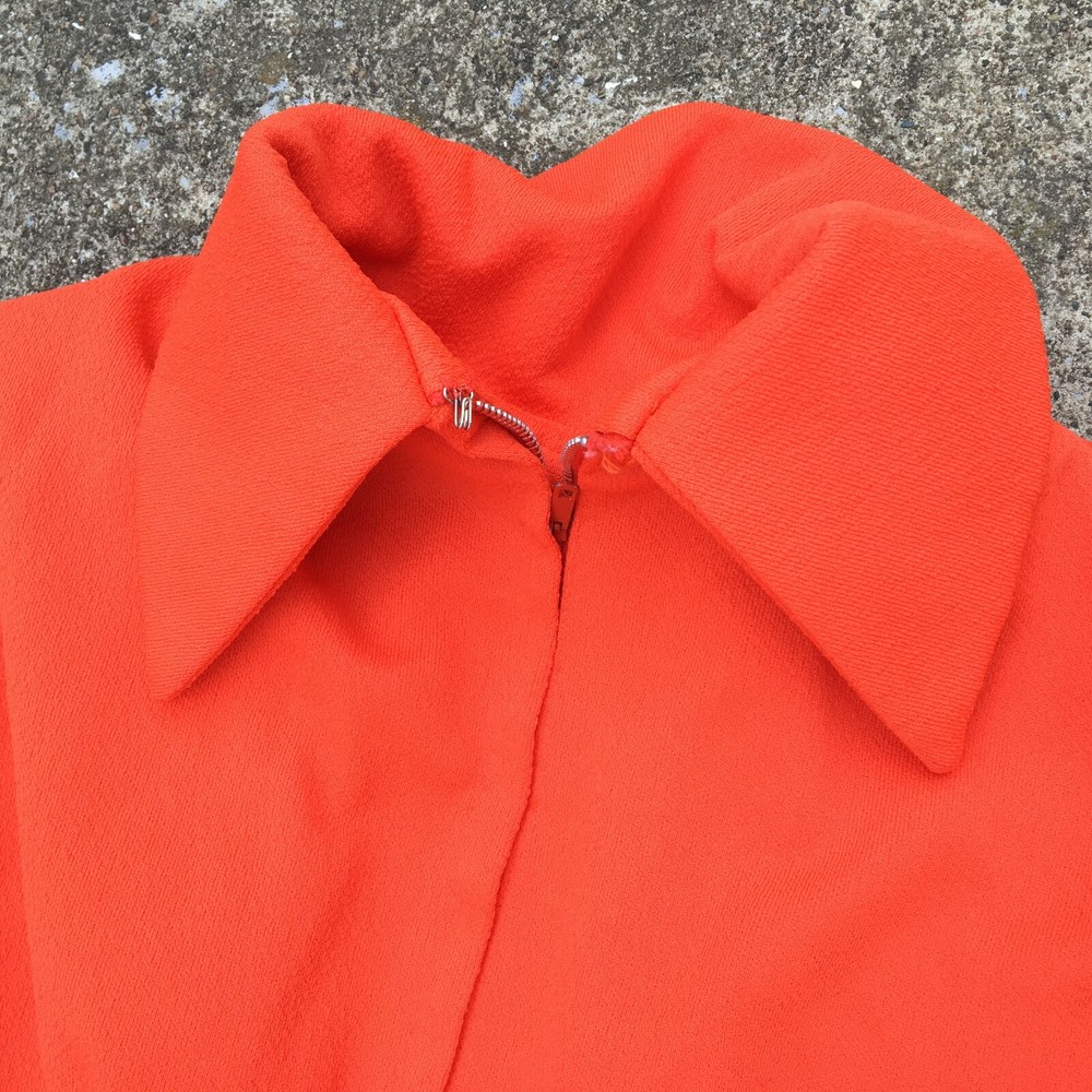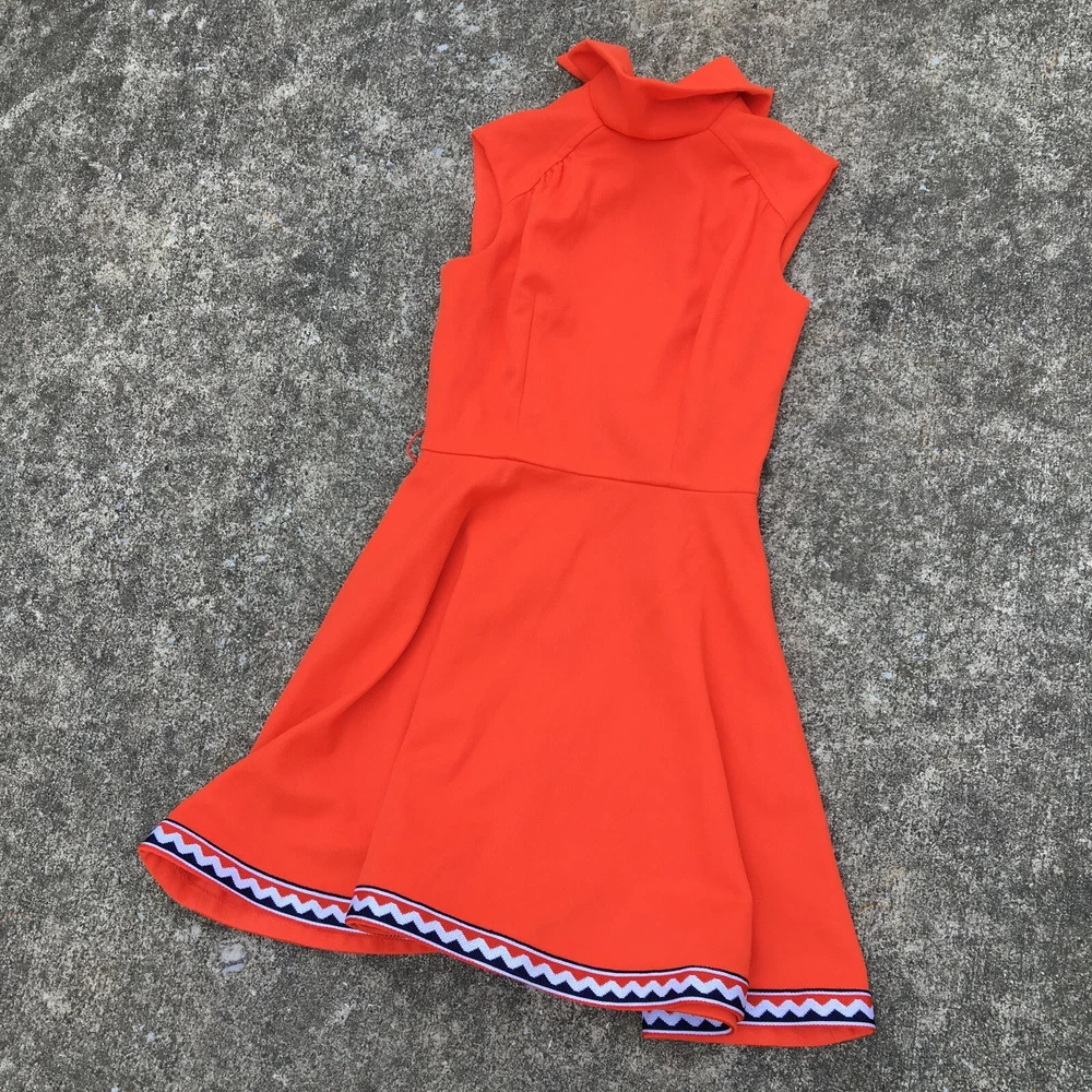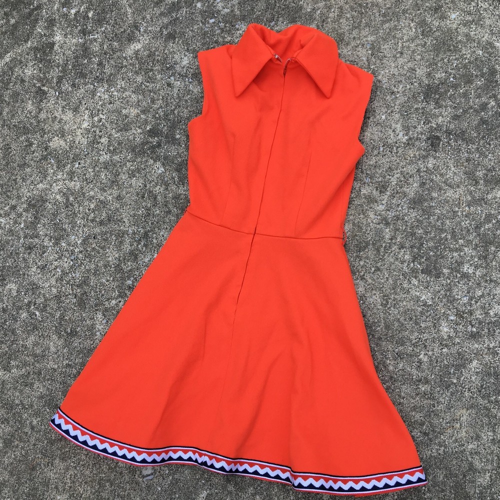 Great used condition, cool old dress. Unsure of size 15" across the waist 32" collar seam to bottom .182...