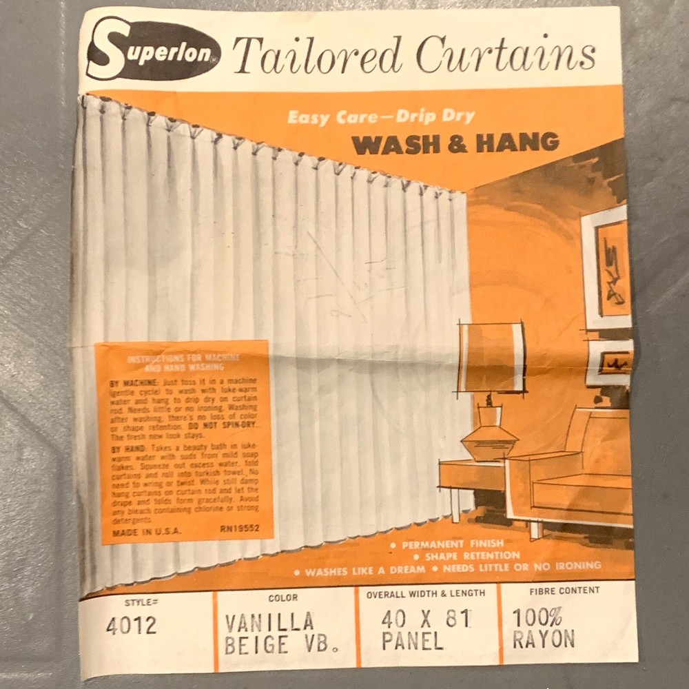 Vintage 60s 70s Product Package Insert Print Ad Curtains Mid Century Advertising 8.5” X 7” Folded I erased some pencil on the front. Thanks for looking!