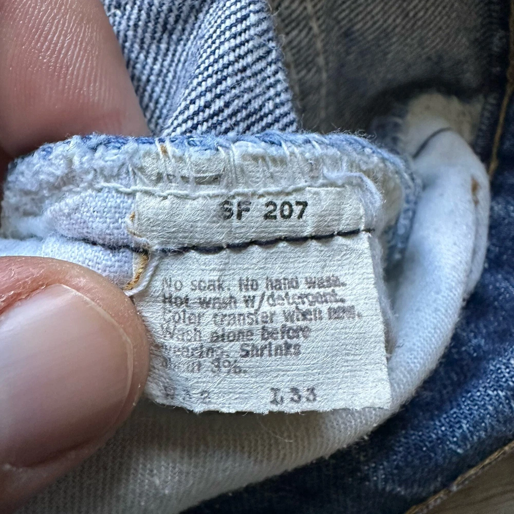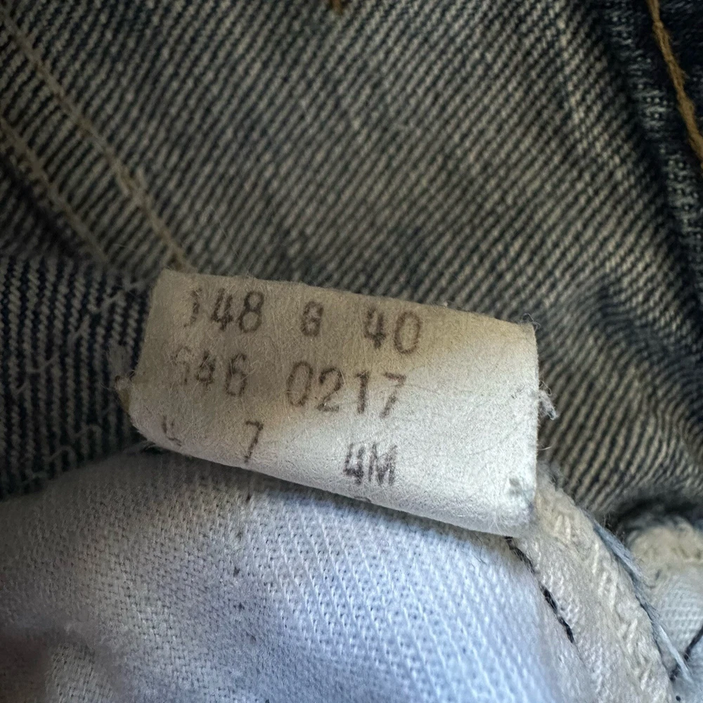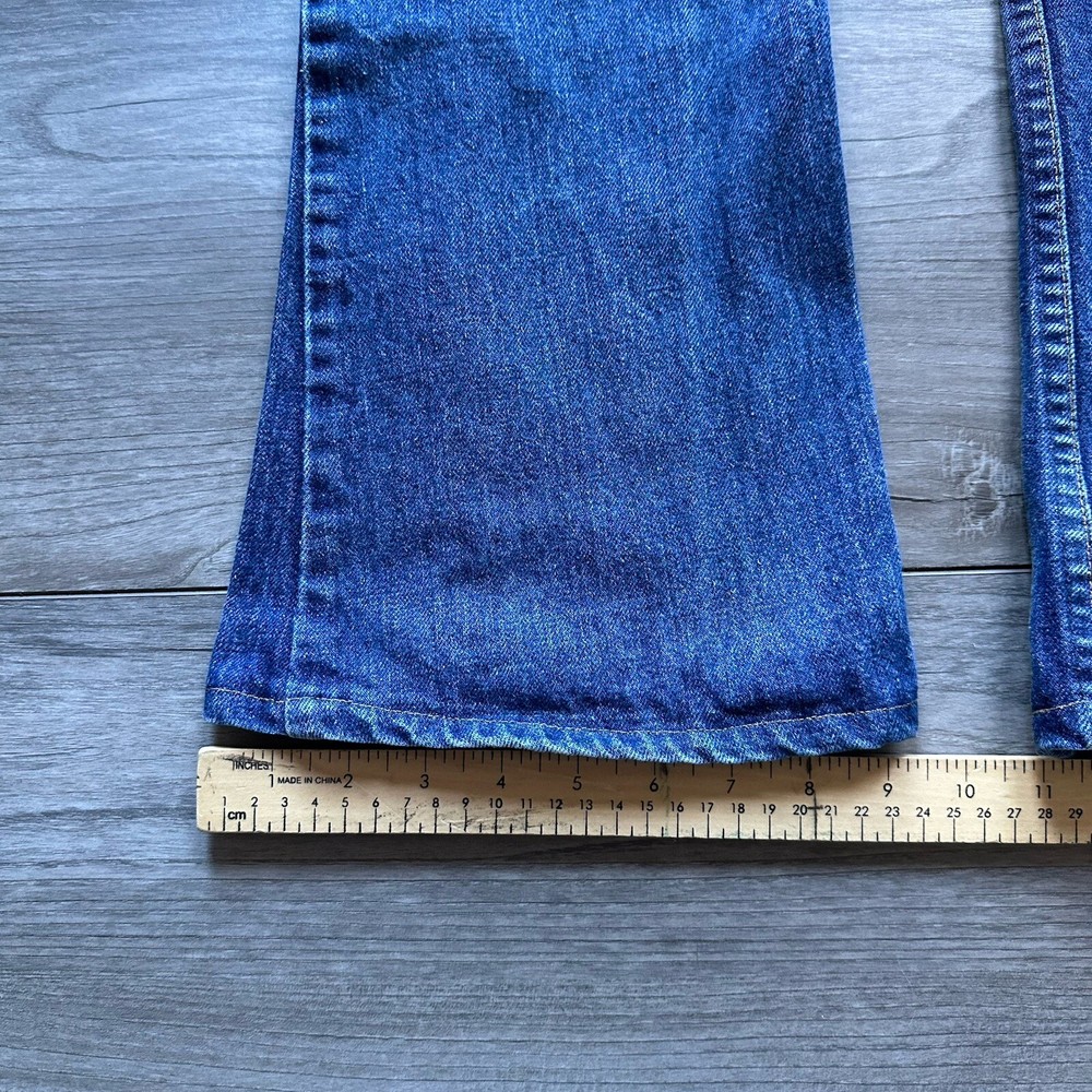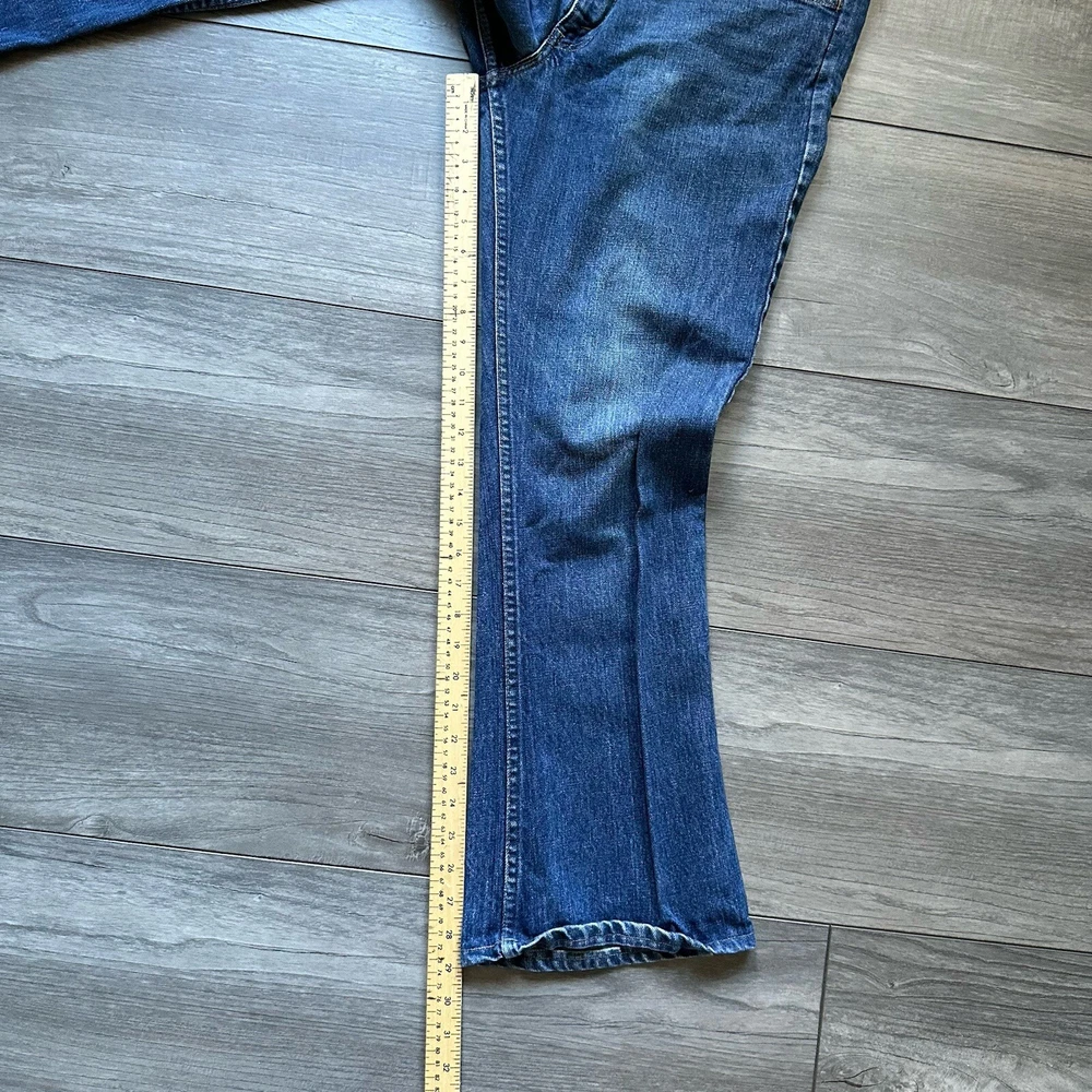 Upgrade your denim collection with these vintage Levi's 646 Orange Tab bellbottom flare jeans. The faded denim and dark wash make them a perfect fit for any casual occasion. These jeans feature a zip and button closure, with a Talon 42 Zipper accent that adds a touch of uniqueness to the design. The mid-rise and regular size type make them suitable for men looking for a comfortable and stylish pair of jeans. The inseam measures 29 inches, and the waist size is 32 inches. The Levi's brand is known for its quality and durability, making these jeans a great addition to your wardrobe. Get a piece of American history with these 70s-inspired jeans, perfect for any hippie or USA-themed party.