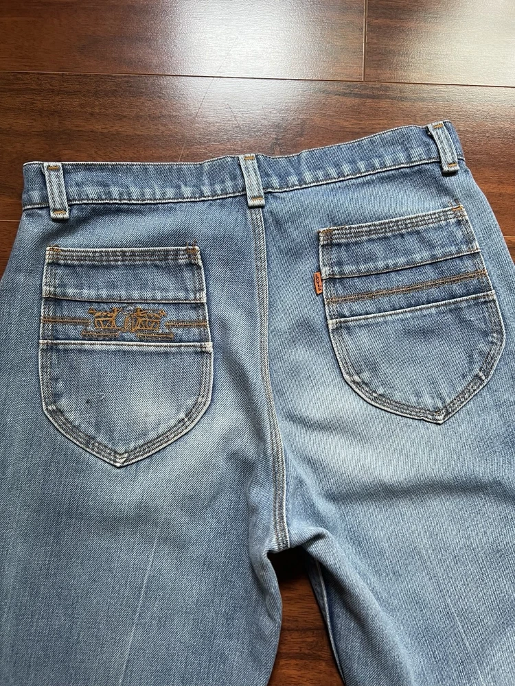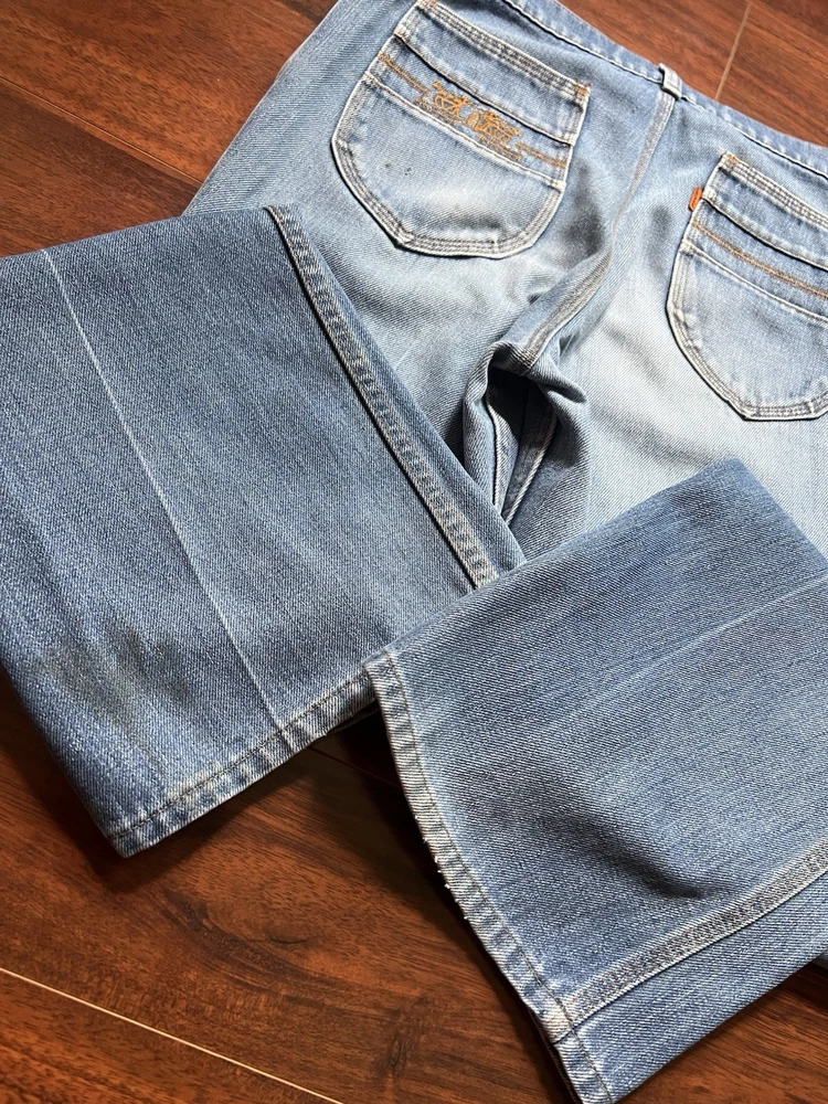 Very good condition. Does have a mark near leg opening and on back pocket (pictured). Heavyweight quality denim. Very nice flared fit. Embroidered back pocket. Dates 1979. Size: 30x32 (Refer to all measurements before purchasing! As there are no returns.) Waist: 30” Inseam: 32” Thigh: 11.25” Knee: 9” Leg opening: 9.5” Front rise: 11” - Every item is washed before shipping! - Same or next day shipping! Check out my shop for more :)