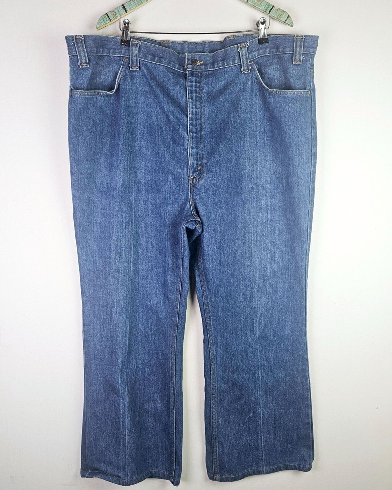 Step back in time with these Vintage 1971 Levi's for Men. Featuring the iconic orange tab, these jeans offer a classic look and a comfortable fit, perfect for everyday wear and collectors alike. • Vintage 1971 design • Iconic orange tab • Size 46 X 29 • 4 Pockets • Classic Levi's quality • Comfortable fit • Midwash • Levi Strauss & Co., SF Cal. Measurements: Waist: 23" Across Hips: 25" Inseam: 23" Thigh: 15" Ankle: 11" Total Length: 43" Rise: 16.5" Keywords: vintage Levi's, 1971 jeans, orange tab jeans, men's jeans, Levi's size 46, retro denim, classic Levi's, collectible jeans, vintage fashion, Levi's pants, Levi's for men, Levi's orange tab, vintage denim, farmer jeans, levis for men label, levis for men, Features: • Wide Leg • Spring, Summer, Fall, Winter, • Mid-wash • Argentina • Machine Washable Size: Mens 46 Condition: Pre-Owned Like New Excellent condition!
