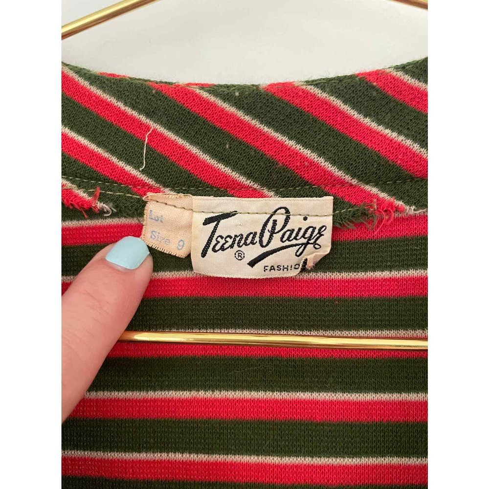 <![CDATA[<div>This dress has all the retro vintage vibes! So great for any cool occasion. I can also see it making a great Halloween costume. Minor stitching needs on the front and back of the right sleeve. Please see picture. No size tag, however fits like a small. In great vintage condition. Pit to pit 17”