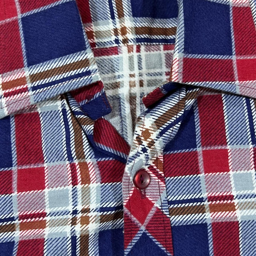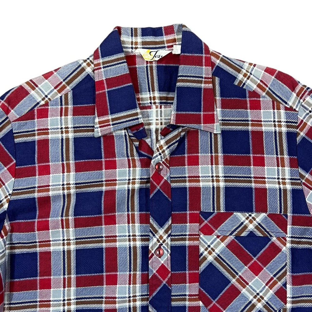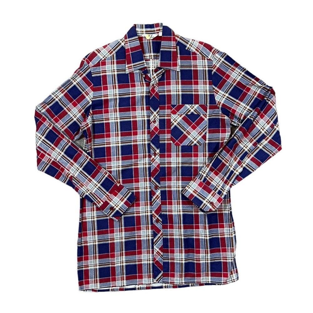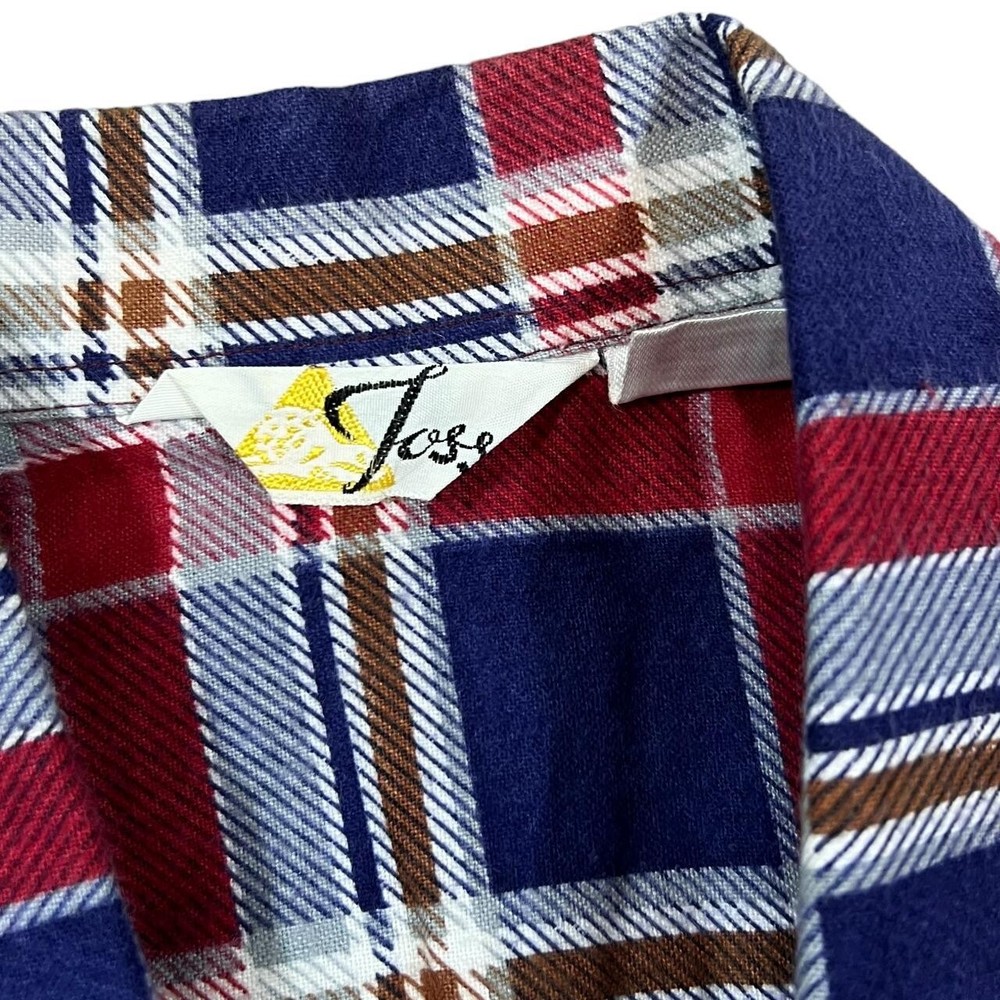 Vintage 80's JOSS Blue Red White Plaid Check Long Sleeve Cotton Shirt Size: 38 fits Medium/Large (See measurements Colour: Navy Blue/Red/White Check Detail: Quality cotton material Condition: Top button missing Measurements: Pit to Pit: 21" Length: 32" Shoulder to Cuff: 26" #9891