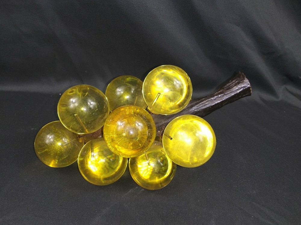 Vintage Amber Orange Lucite Glass Grapes Cluster 1960's Mid Century 7" L. / 4"H. Few scratches....