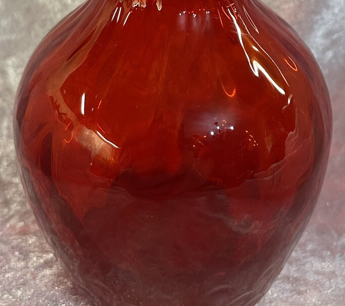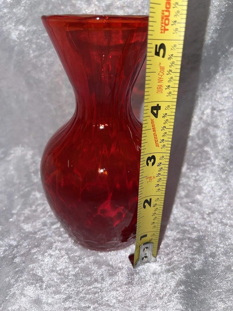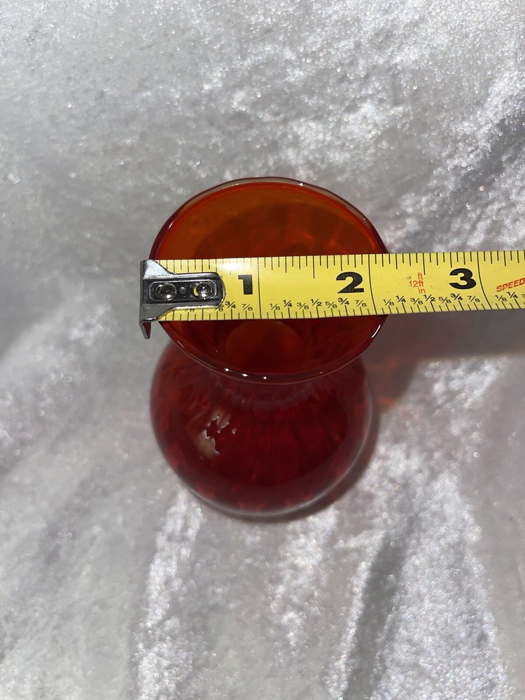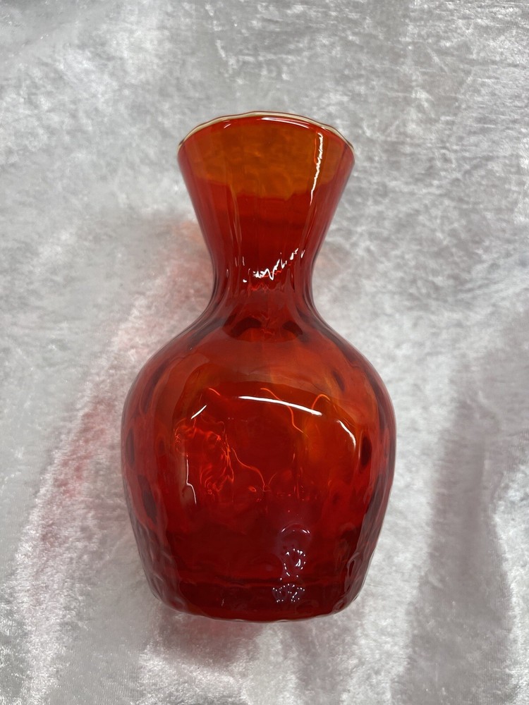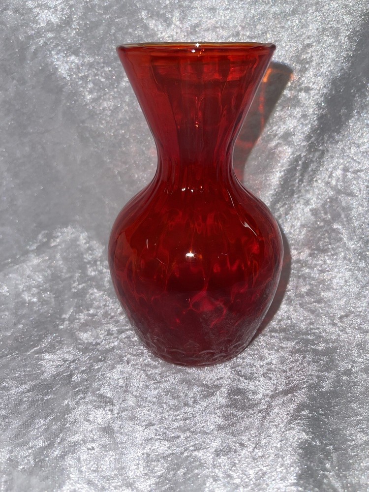Vintage Amberina Deep Orange Vase Mid Century 5 1/4” Hand Blown Gorgeous Vase. It has a sort of wavy appearance in the glass. Hard to capture in photo. No chips or cracks Smoke free home