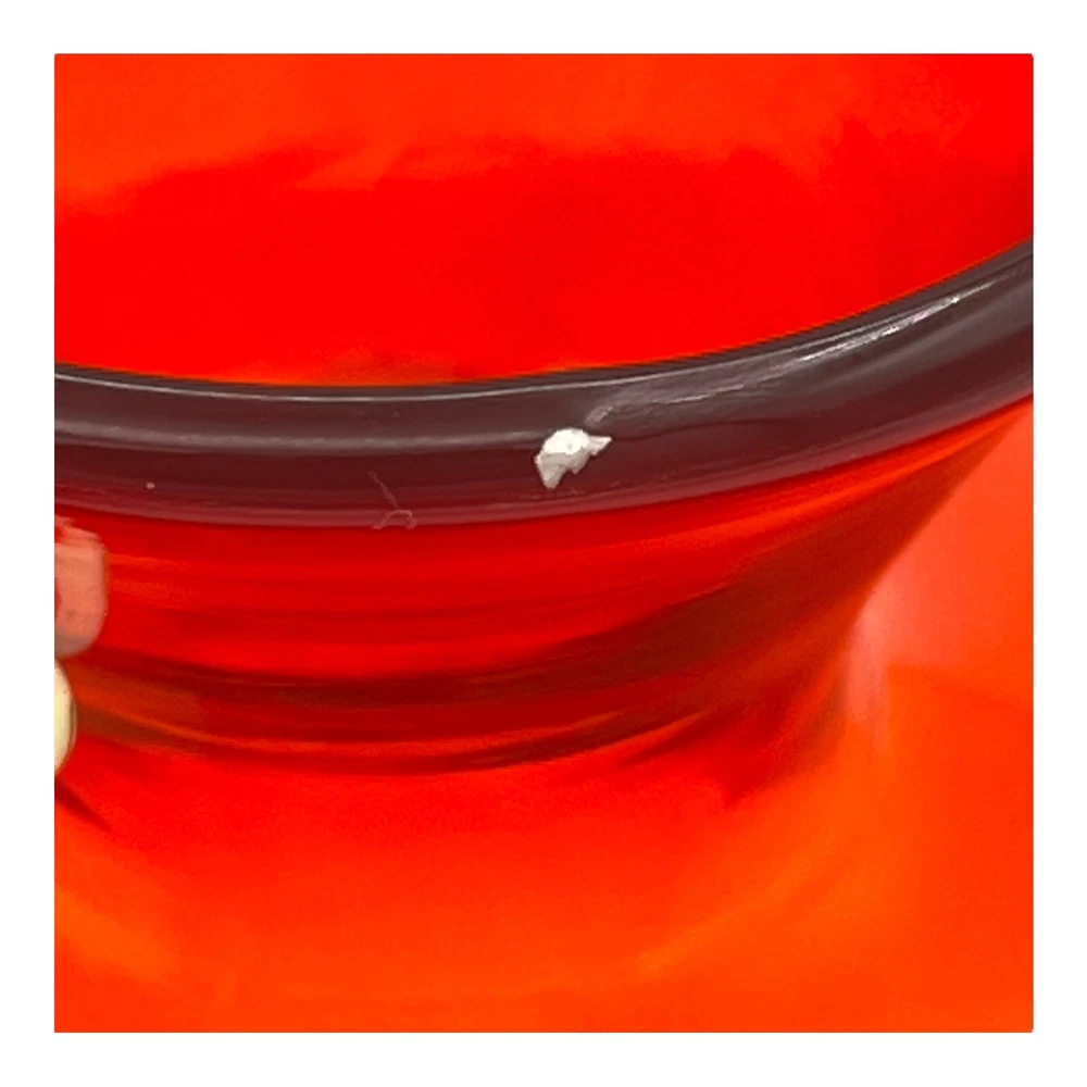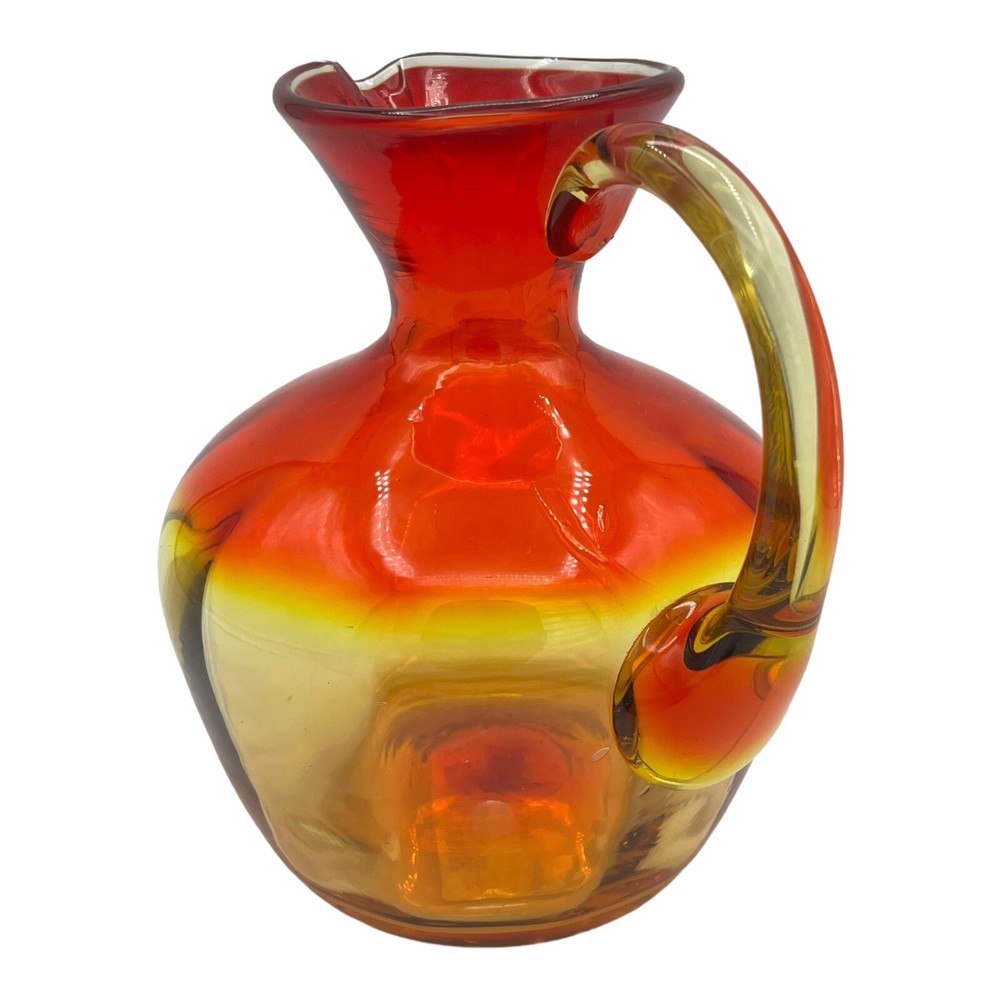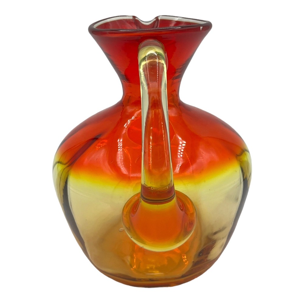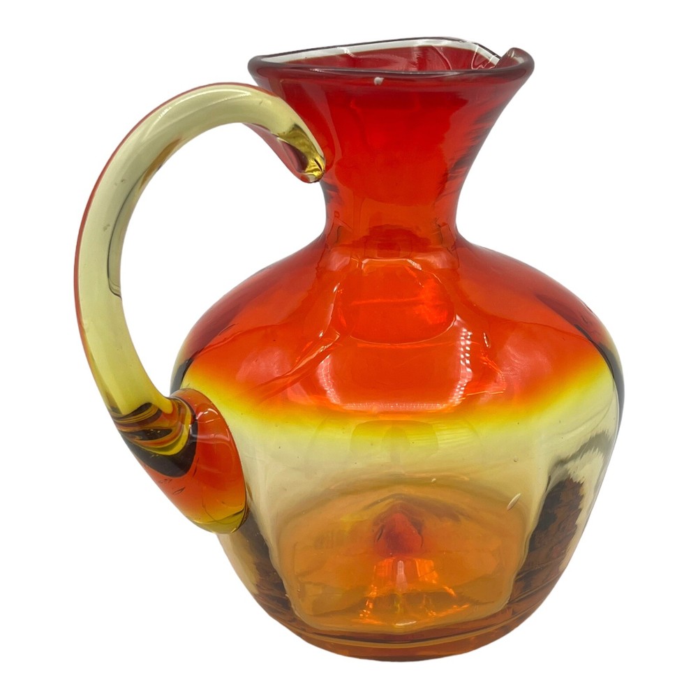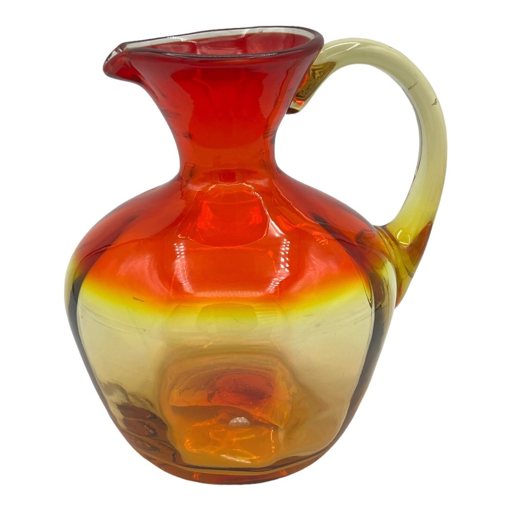 Vintage Amberina Large Blown Glass Pitcher Mid Century 7" High. There is an imperfection in the glass on the rim. Has a white spot in the glass that is not damaged. The glass around the white spot is smooth and damage free. No chips or cracks. Please see photos for condition details. We combine shipping. Please contact us for a quote or any other questions you may have. please note: we ship within North America only.
