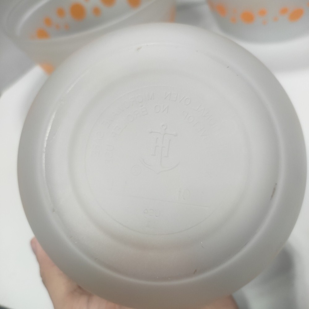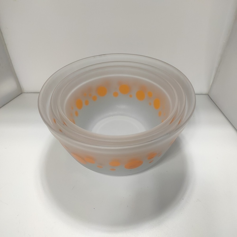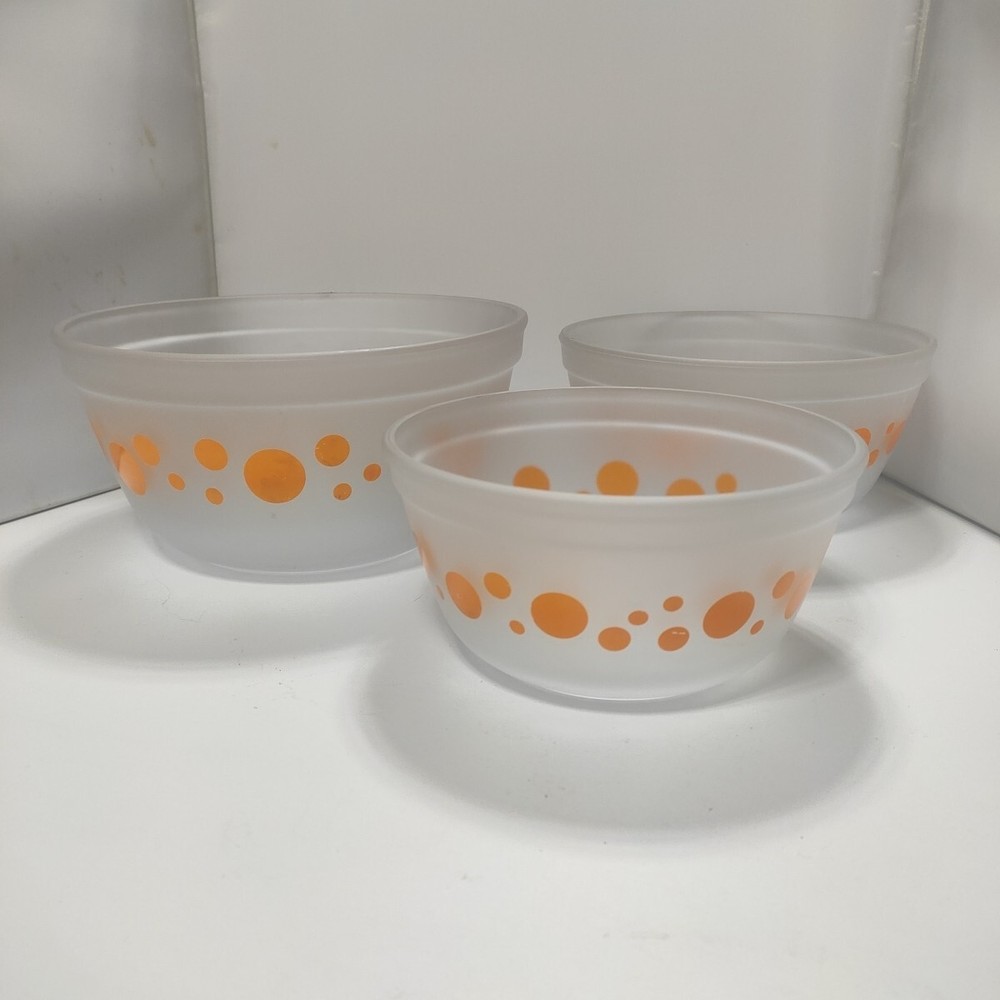 These vintage Anchor Hocking nesting bowls are a must-have for retro lovers! The cheerful orange dots bring a pop of color to my kitchen, and the sturdy glass holds up well for mixing, serving, or even displaying fruit. The three sizes are super handy—I use them daily for everything from prep work to snacks. They stack neatly to save space, and the mid-century style adds charm to my counter. A perfect blend of nostalgia and function!