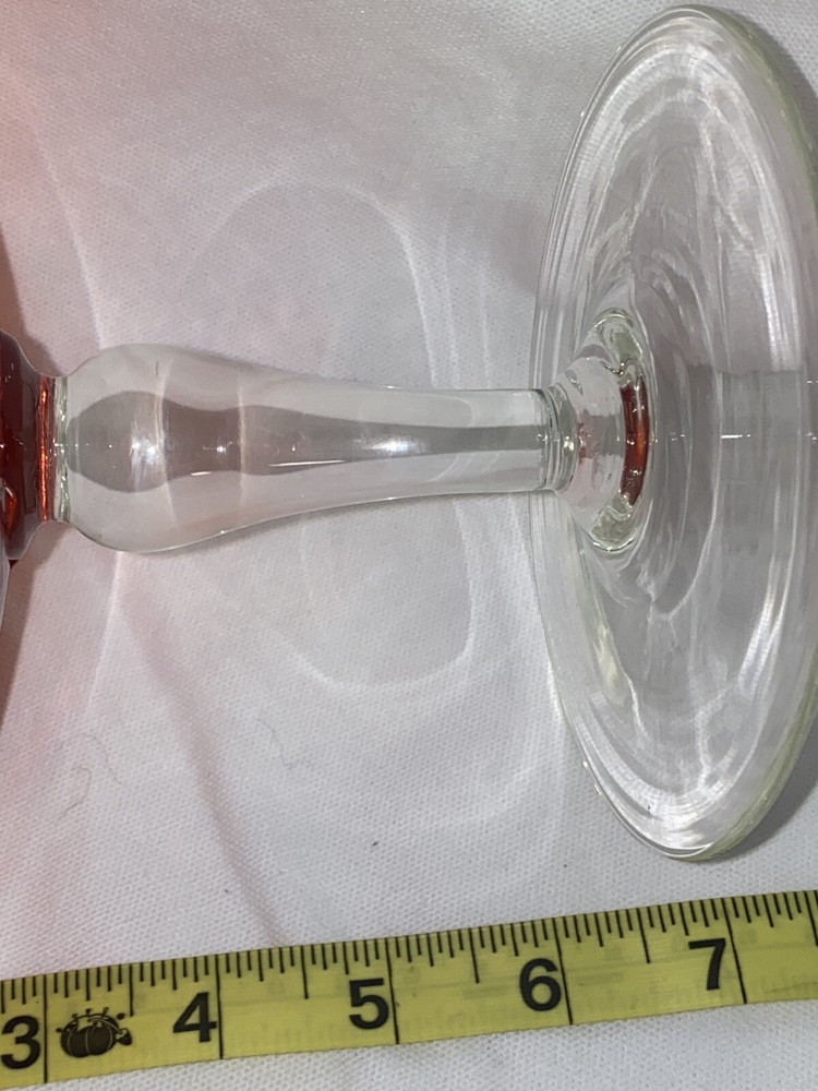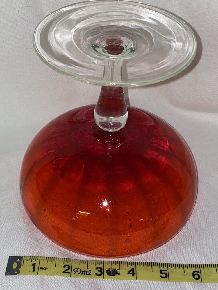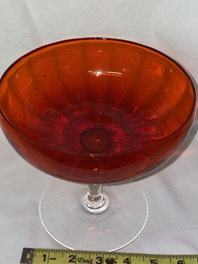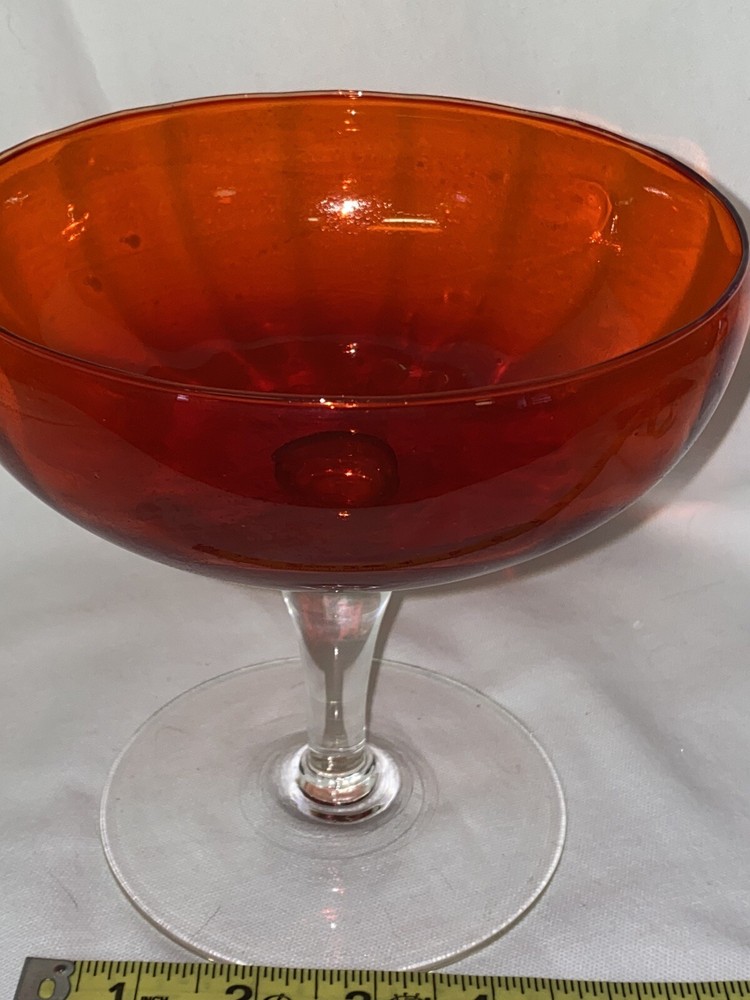 Vintage Art Glass Compote Orange With Clear Stem. Beautiful and in excellent condition.