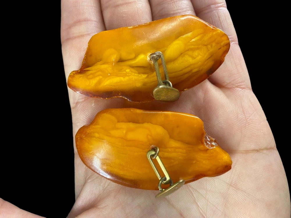 Vintage Baltic Amber Mid Century Modernist Pair of Cufflinks VG+ condition. Signs of normal use and normal cosmetic wear. Please examine the pictures carefully as they serve as part of the condition and description. Approx. Dimensions: 2"L x 1.25"W About us: We strive to be 5 star sellers. We will always try to work with our customers to resolve any issues may occasionally arise. Please contact us if there is any issue with purchased items. We do not end auctions early for Buy-It-Now (BIN) offers. If we want something to be sold as BIN item, it will be listed as such. All of our auctions are no-reserve listings. Shipping: We are always happy to combine orders for shipping whenever possible, international shipping orders may not be combined. Combined shipping costs will vary according to the size and weight of the purchased items. When purchasing multiple items, please wait for an invoice with the combined shipping price before paying. Payment: Payment is due no later than 3 days after the close of the auction. eBay will automatically open unpaid item case if payment is not received during this time.