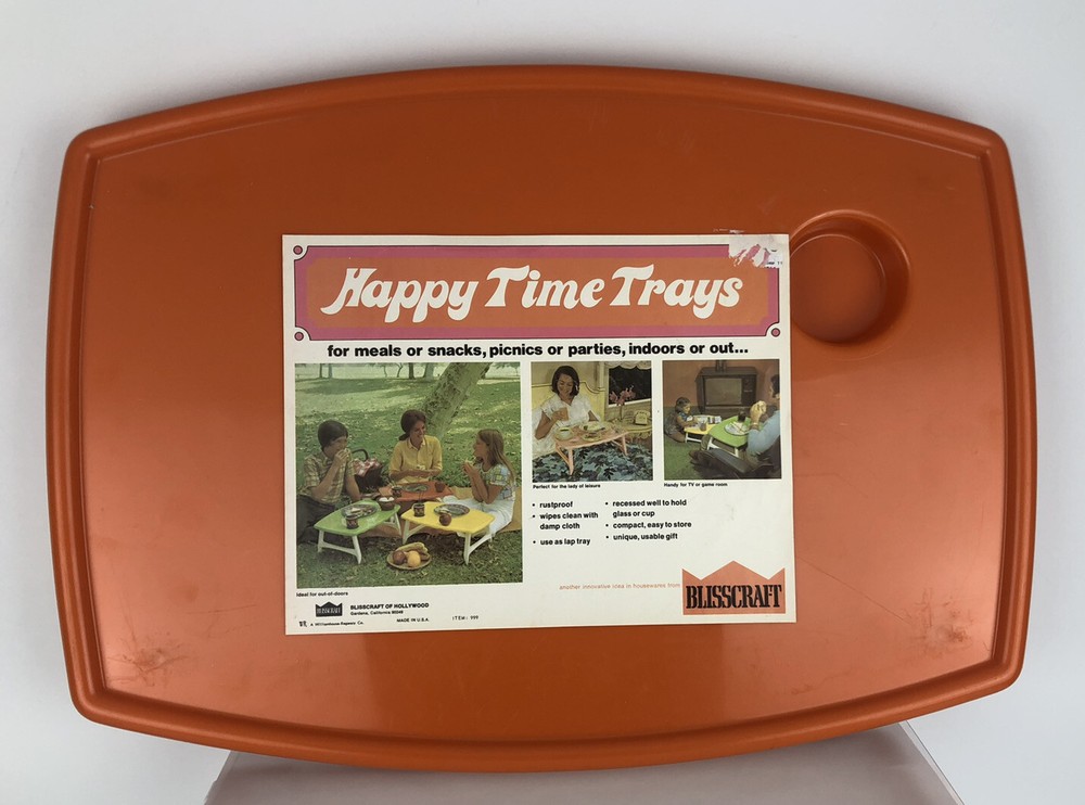 Vintage Blisscraft Happy Time Plastic Serving Tray • ORANGE • NEW old stock. Plastic wrap has been removed....