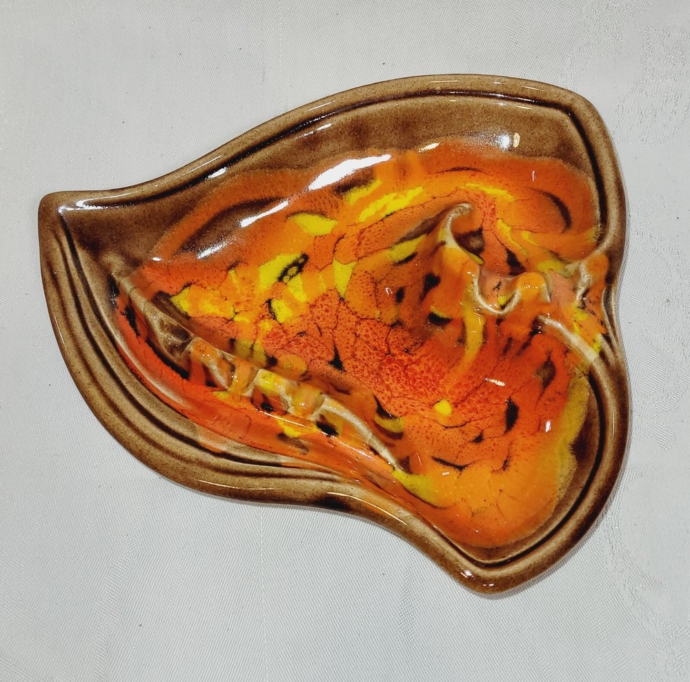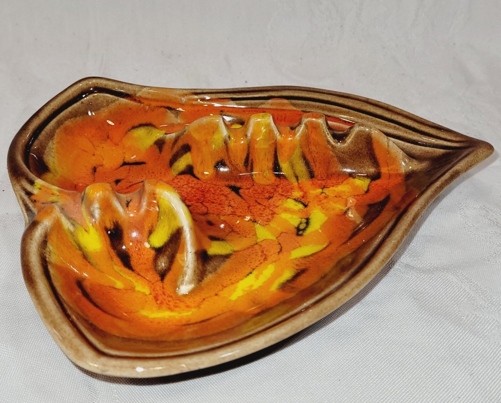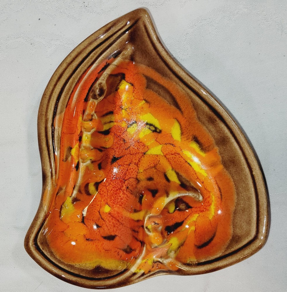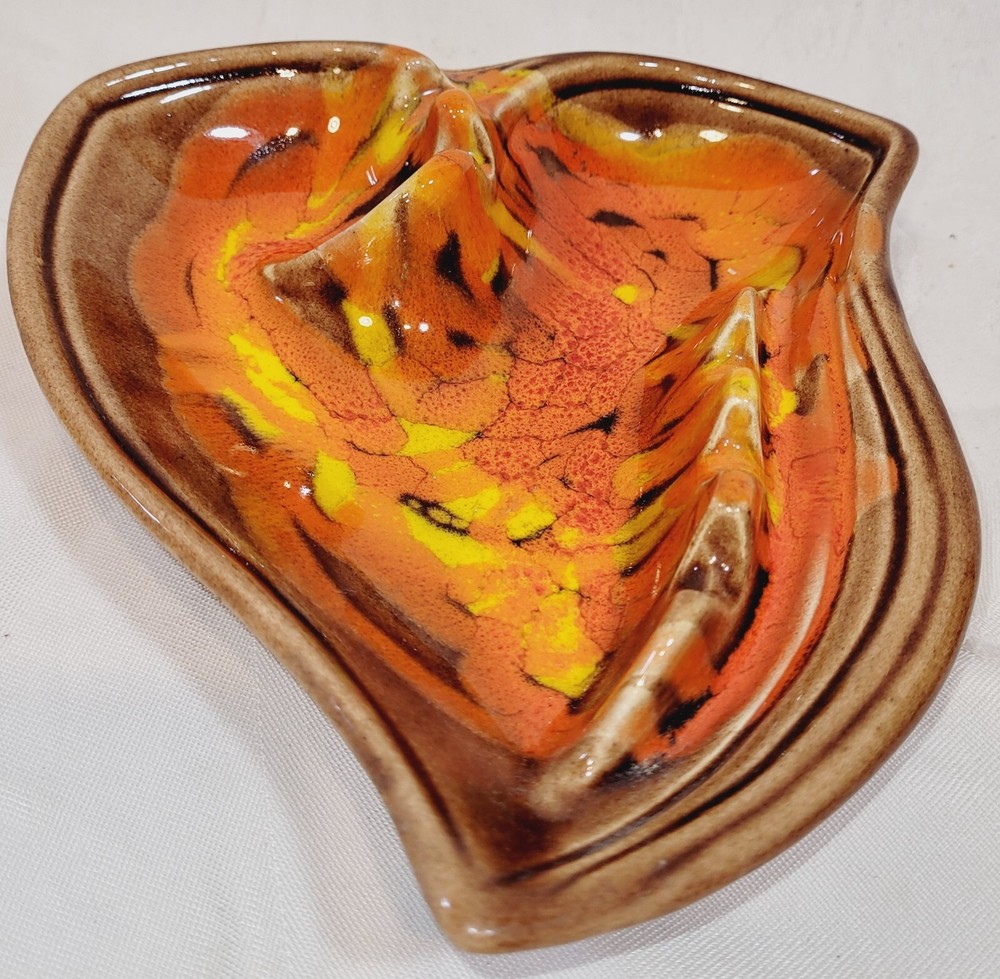 Vintage California Original Pottery Ashtray Mid Century Orange Brown Ceramic. Excellent condition....