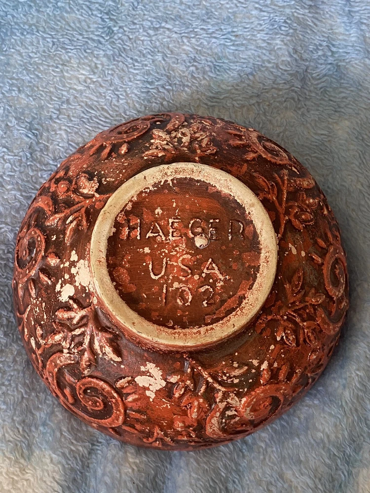 Vintage Ceramic "Haeger" Pottery USA Ceramic Bowl; Burnt Orange; #102. Please look and zoom in to pictures for better description and measurements. STORE INFO AND POLICY PLEASE NOTE The Pictures are always right PLEASE SEE PICTURES FOR MEASUREMENT & don't hesitate to ask any questions. IF THEIR IS A PROBLEM I kindly request that you contact me before leaving negative feedback. I will do everything reasonable in my power to satisfy you. POSITIVE FEEDBACK FEEDBACK WILL BE LEFT AFTER YOUR FEEDBACK IS RECEIVED. PLEASE POSITIVE Feedback Is Appreciated, EBAY stores thrive with every Positive feedback left by its customers. FYI— If you don’t know how to leave feedback through EBAY NO Problem, Just message me and I will send you step by step instructions. PLEASE NOTE: Please inspect all pictures before placing a bid or buying an item to ensure you are going to be satisfied with your purchase. If you see a crack or chip in a picture but I failed to disclose it in description please assume it has a crack or a chip. SHIPPING DISCOUNTS Are Available For Multiple Items Purchased just add them to your cart to purchase them together but Please pay promptly. DISCLAIMER: I am not a expert nor pretend to be on any of the items I sell, I just simply state what I see and why I have been told about the item from other people. If you know or see a misrepresentation on a specific item PLEASE let me know so I can correct the listing. The pictures are always right so trust what you see. I do sometimes use stock photos but I also include actual product pictures. RETURNS WILL ONLY BE ACCEPTED IF THE ITEM IS MISREPRESENTED OR DAMAGED, PLEASE BE SURE TO READ THE DESCRIPTION AND LOOK CAREFULLY AT ALL THE PICTURES TO AVOID YOU FROM PURCHASING SOMETHING YOU WILL NOT BE ABLE TO USE AND WOULD NOT BE TO YOUR SATISFACTION