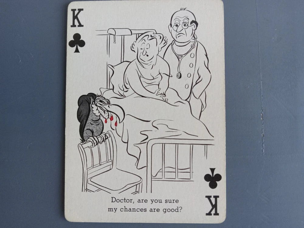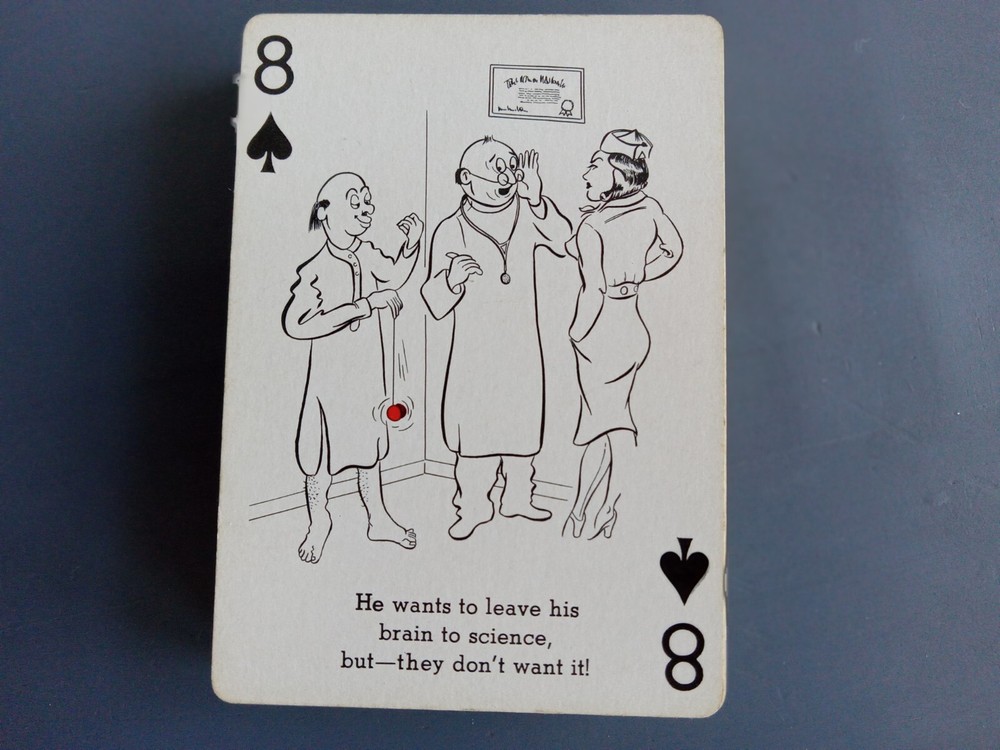 Cheer Up Doctor Themed Cartoon Cards W B & B Tax Stamp Creative Playing Card Co. Full deck, opened.52 cards with different cartoons, with a cheer up, hospital/doctor theme funny line. Good condition w...