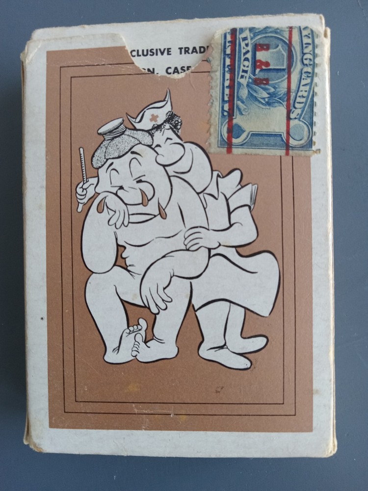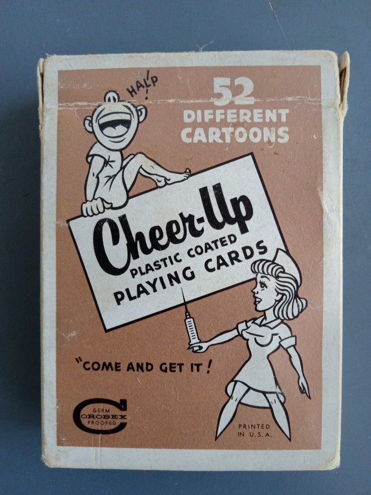 Cheer Up Doctor Themed Cartoon Cards W B & B Tax Stamp Creative Playing Card Co. Full deck, opened.52 cards with different cartoons, with a cheer up, hospital/doctor theme funny line. Good condition with some wear and aging. See photos.