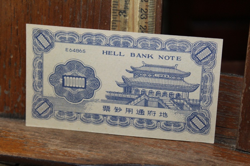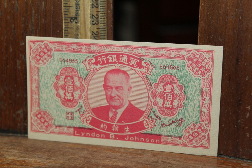 Vintage Chinese Hell Bank Note Joss Paper Money with Lyndon B Johnson Free US Shipping
