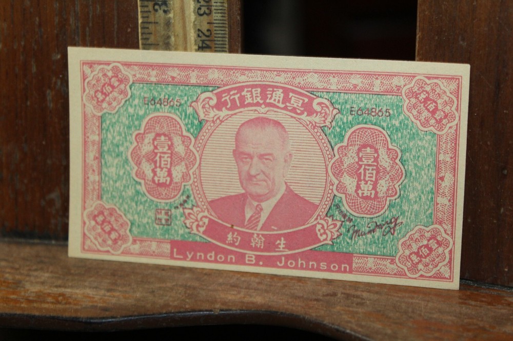 Vintage Chinese Hell Bank Joss Paper Money with Free US Shipping Lyndon B Johnson