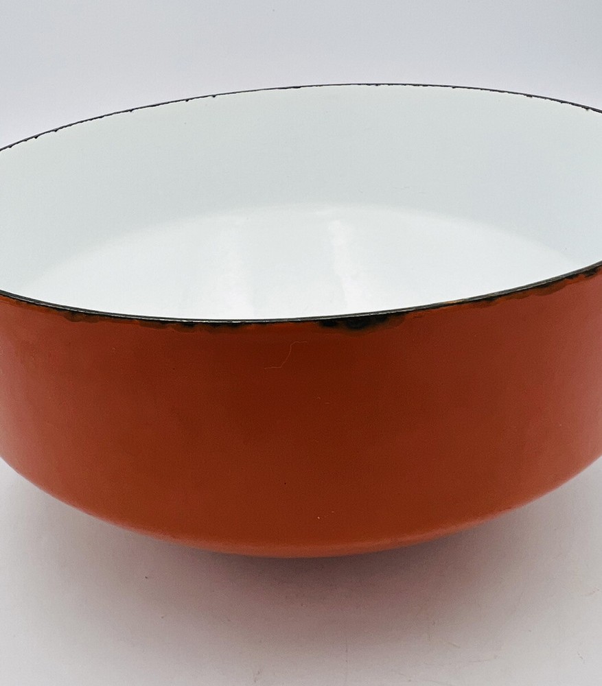 Has the typical minor chips in the enamel around the lip (pictured). Otherwise the bowl is in great condition. See pictures for condition and details