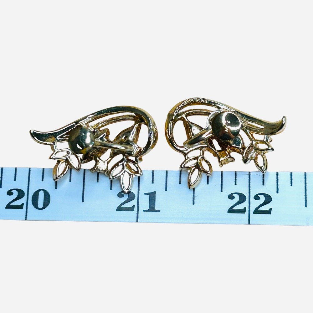 Vintage Coro Gold Tone Orange Navettes Screw Back Earrings 1950s Mid Century Modern Measurement in photos
