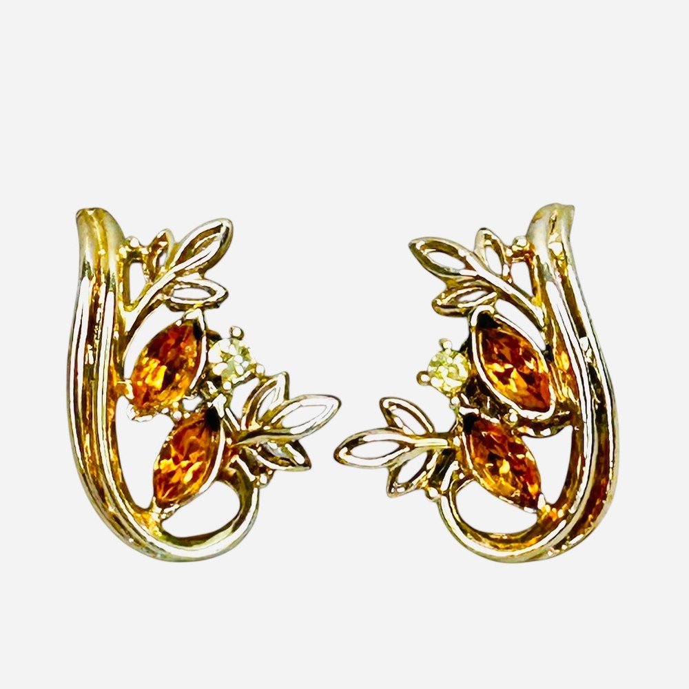 Vintage Coro Gold Tone Orange Navettes Screw Back Earrings 1950s Mid Century Modern Measurement in photos...