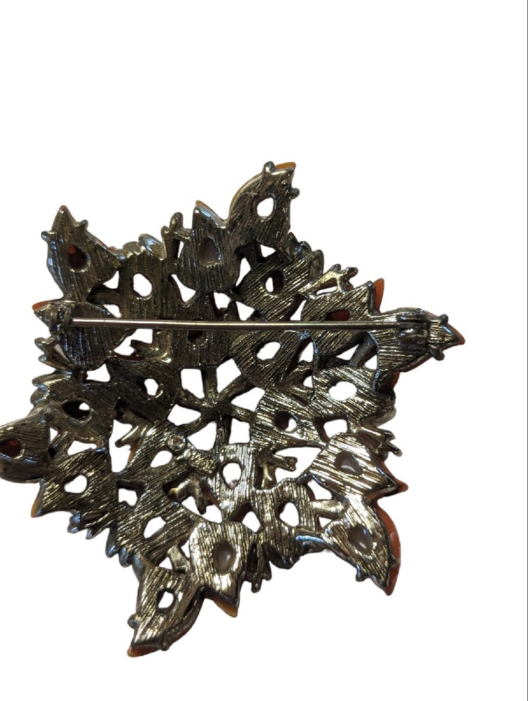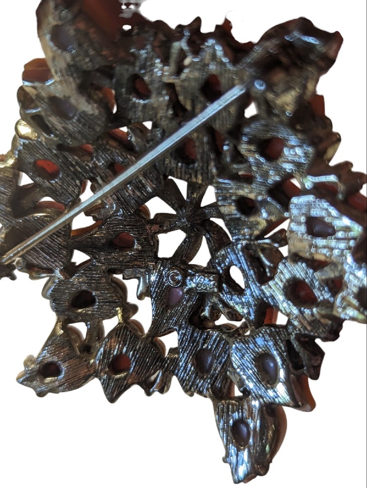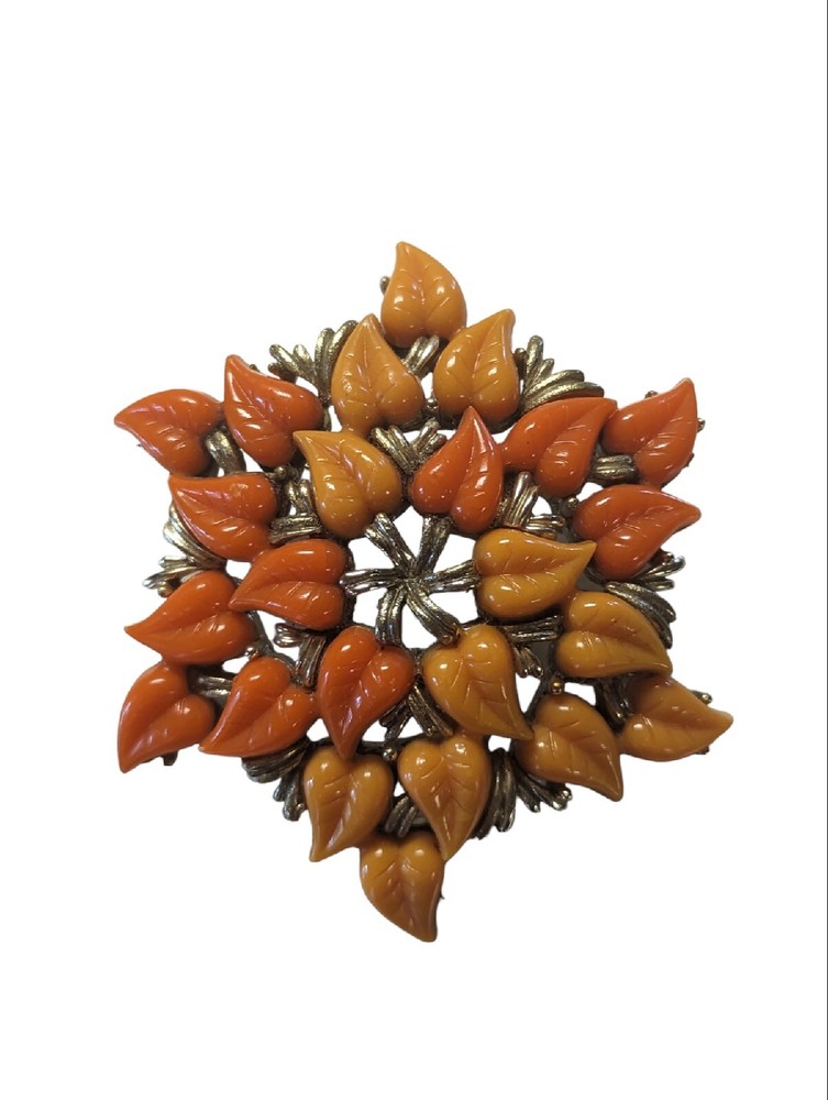 Vintage Coro Orange Thermoset Floral Brooch Mid Century Modern....