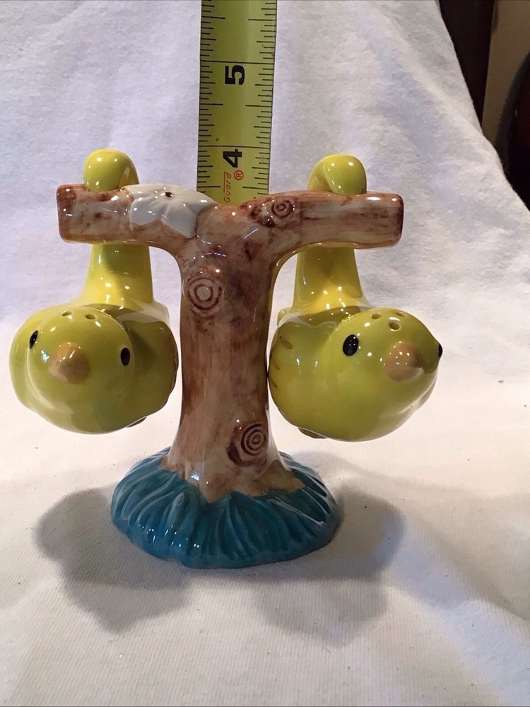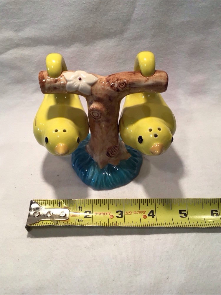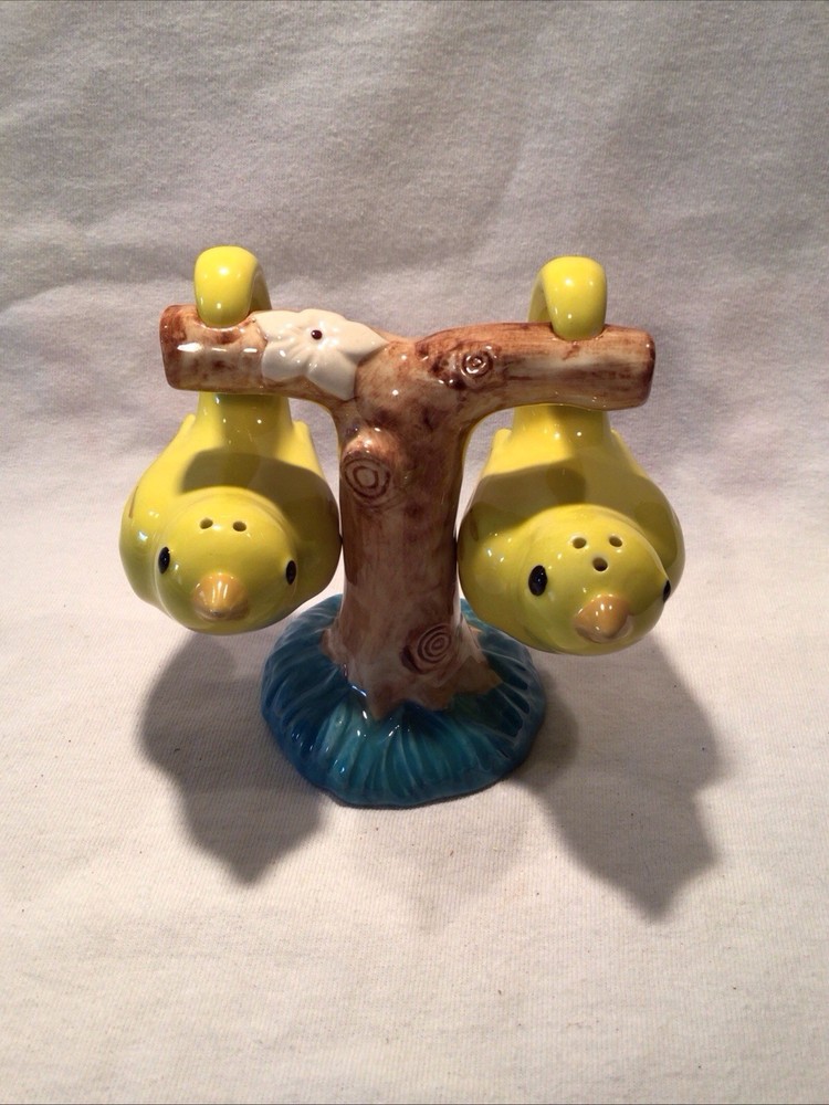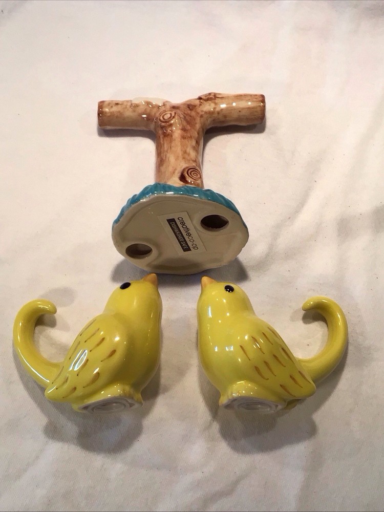 Add a dash of whimsy to your dining experience with these Creative Co-op hanging bird salt and pepper shakers. Crafted from high-quality ceramic, the set features a charming tree branch stand that doubles as a holder for both the salt and pepper shakers. The bright yellow bird hanging from the tree branch brings a playful touch to any table setting, suitable for all occasions. Not just a functional kitchen gadget, this original set is also a delightful decorative piece that catches the eye. Its universal food compatibility ensures it's ready to shake and sprinkle on just about anything. The set's unique shape and brand make it a must-have for collectors and home chefs alike.