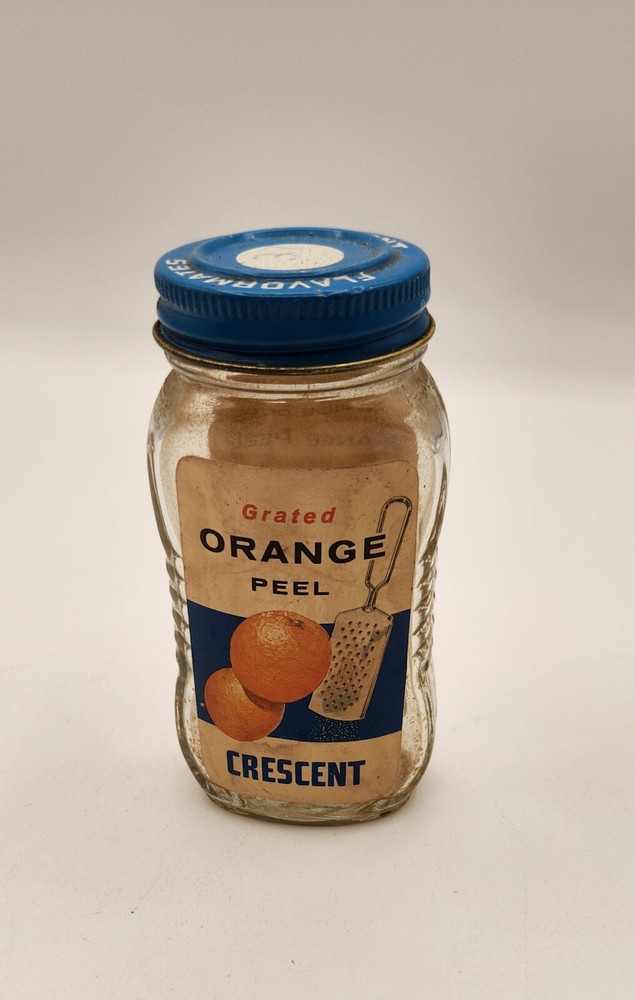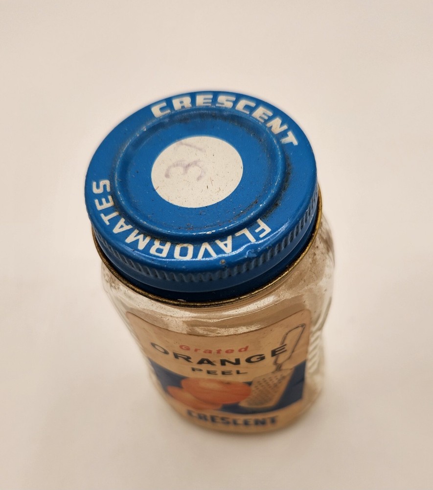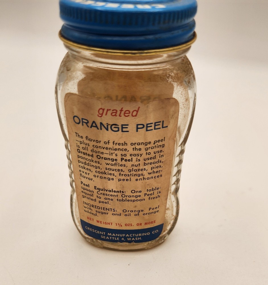 Vintage Crescent Cooking Flavormates orange peel grated 1950s Glass Jar (Empty)