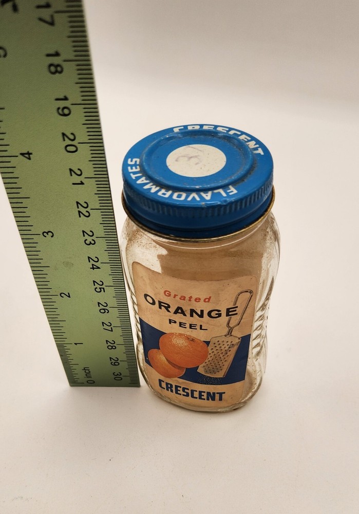Vintage Crescent Cooking Flavormates orange peel grated 1950s Glass Jar (Empty)...