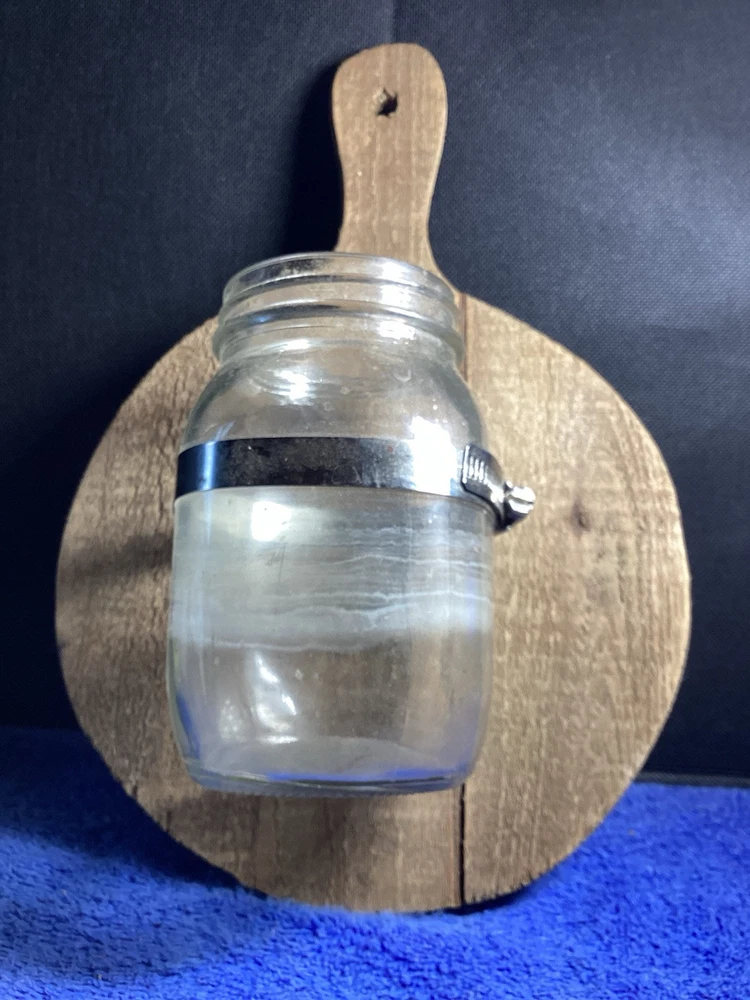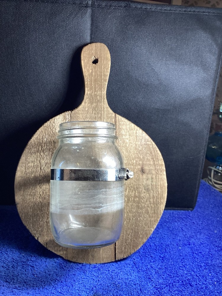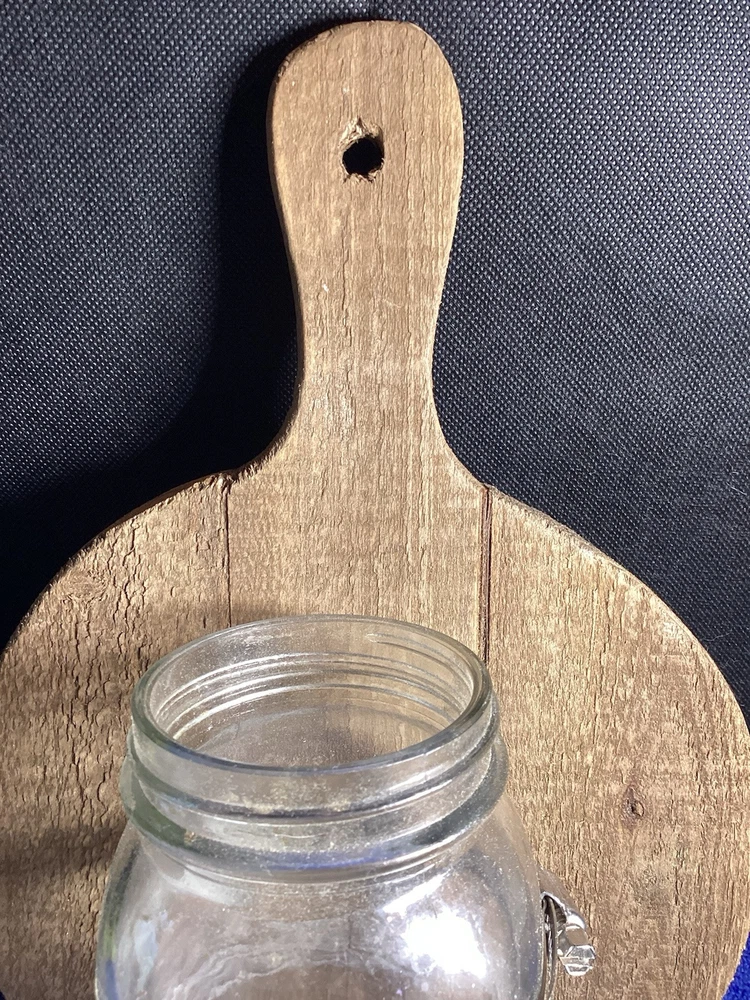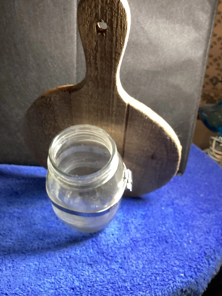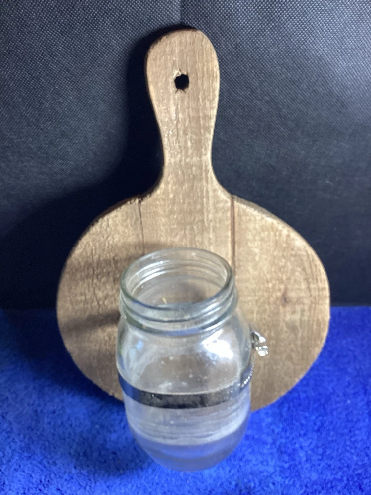 Add a touch of vintage charm to your home decor with this Creative Co-Op hanging glass jar. The decorative brown wood frame adds to the rustic appeal of this medium-sized wall hanger, which is perfect for displaying your favorite plants or flowers. The jar is made of high-quality glass, ensuring that your items are kept safe and secure. This hanging decor piece is perfect for those who love art and vintage style. The jar measures 12 inches in height and 8 inches in width, making it suitable for any room in your home. Its unique design and decorative features make it a great addition to any space. Has a little residual in jar to add to its uniqueness.