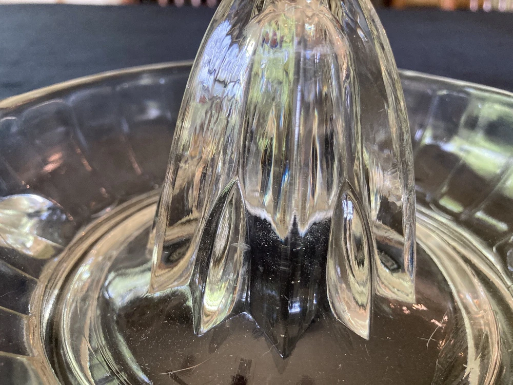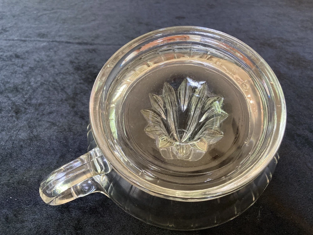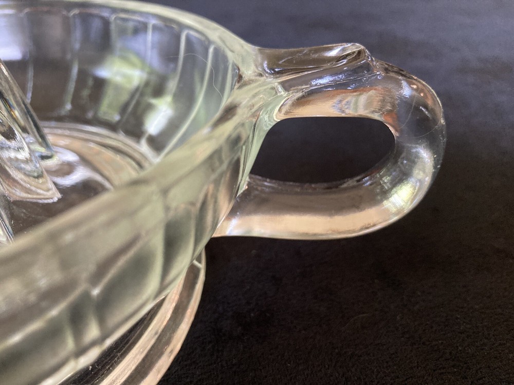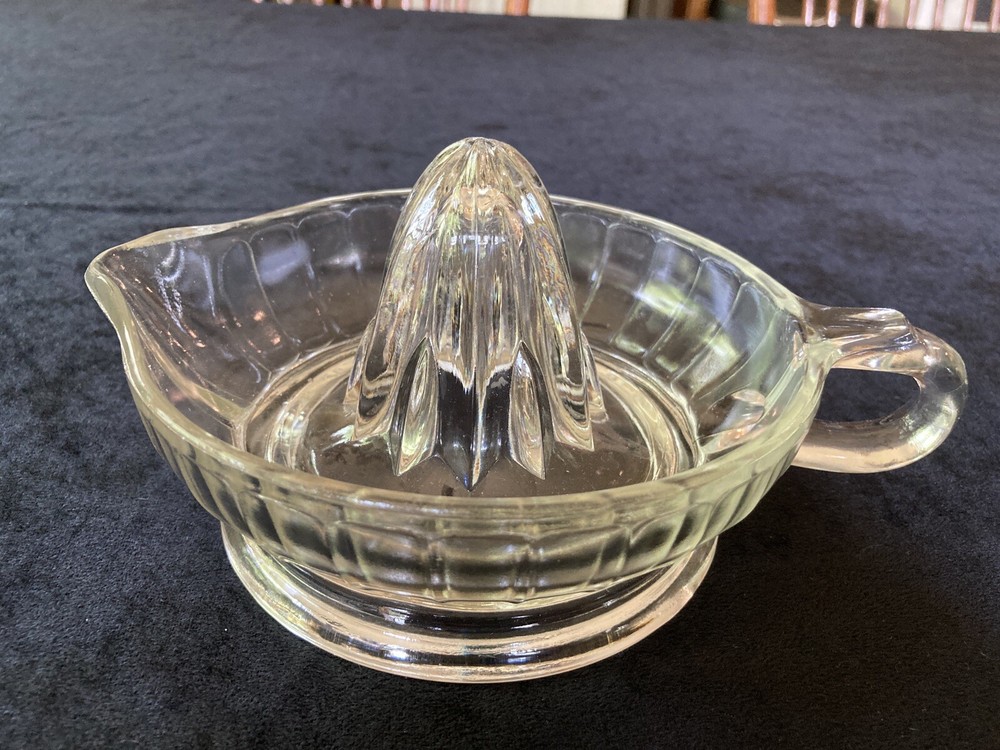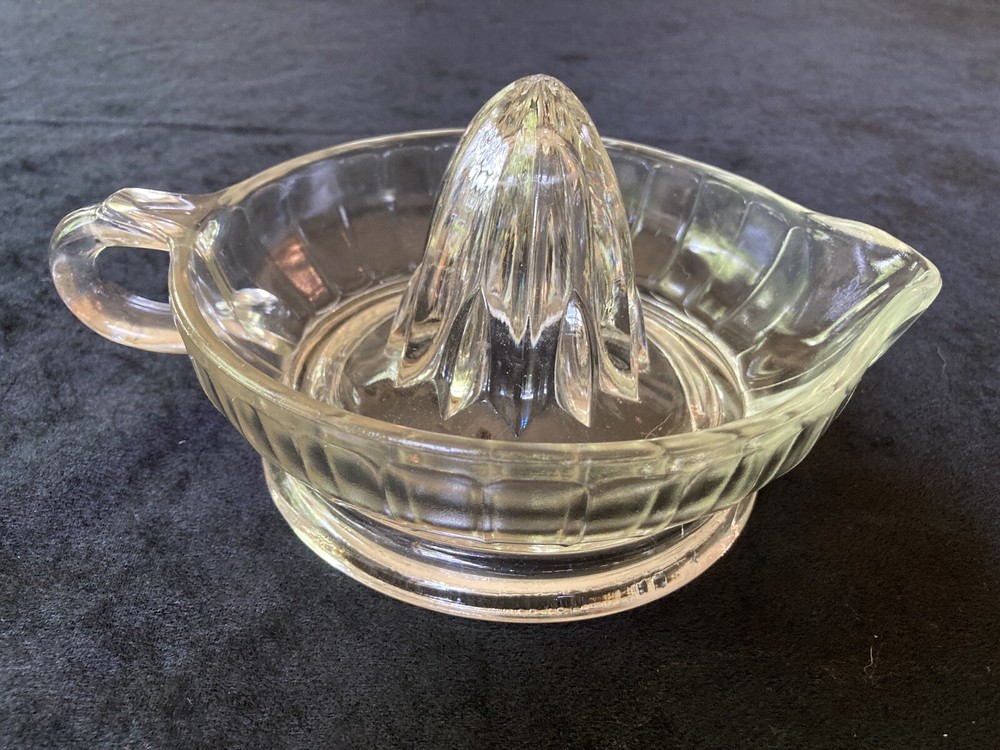 Vintage Depression Clear Glass Reamer Juicer Tab Handle Orange Lemon Mid Century. This is a great glass juicer. It is preowned; but in good condition. It comes from a smoke free home. LISIOOTIC