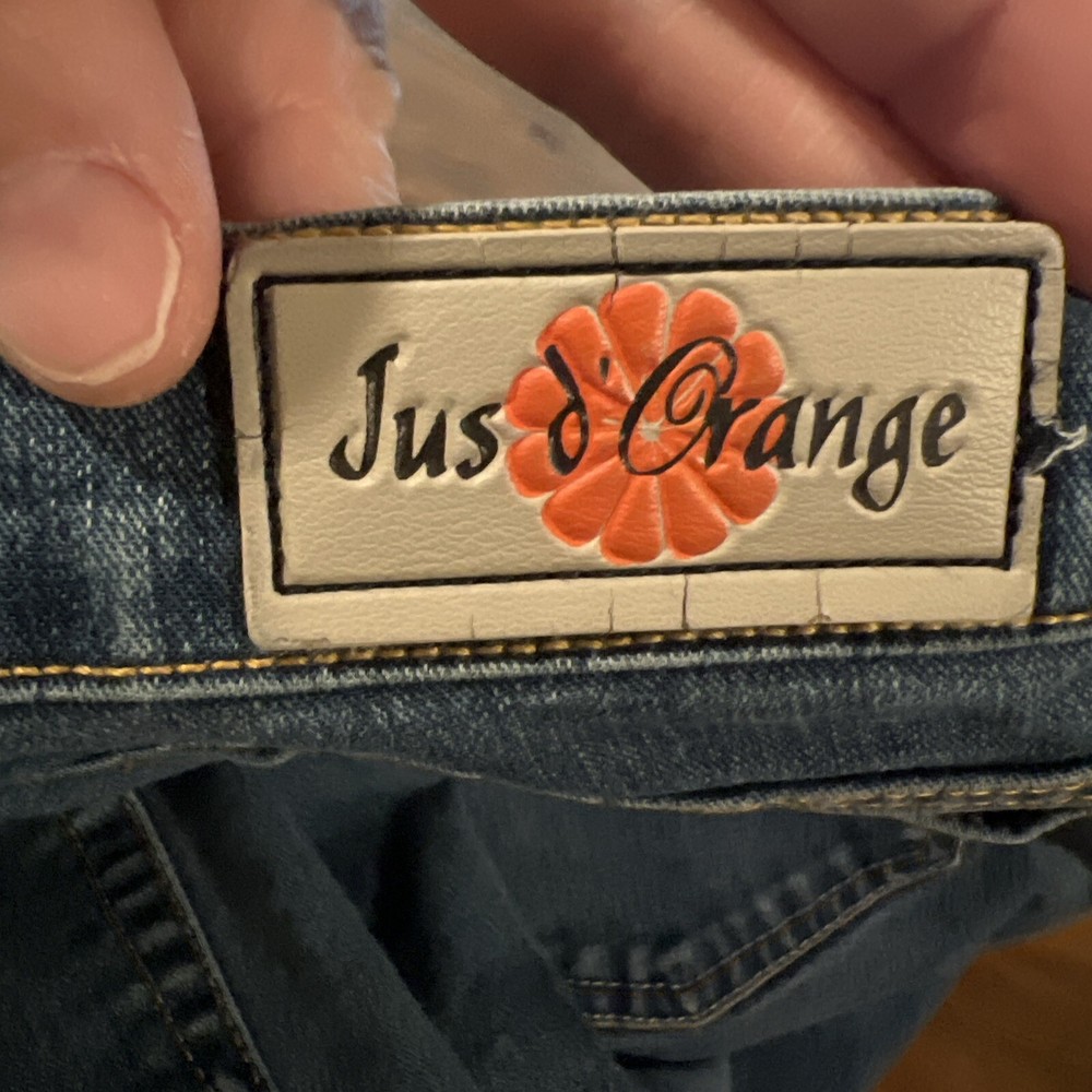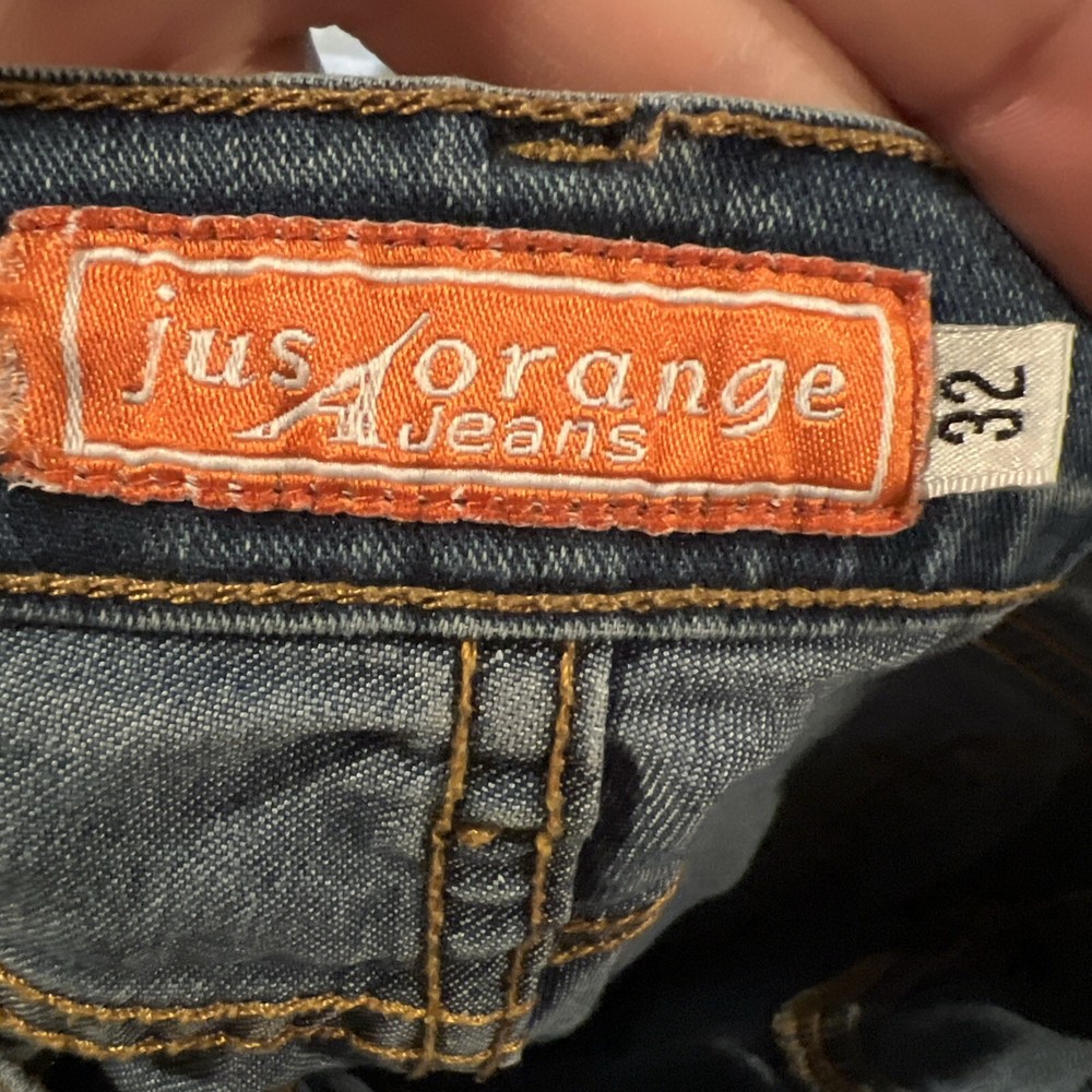 Vintage Jus D’Orange women’s Denim Jeans dark wash distressed fading Some distressed on bottom from walking Size 32” waist 34” inseam...
