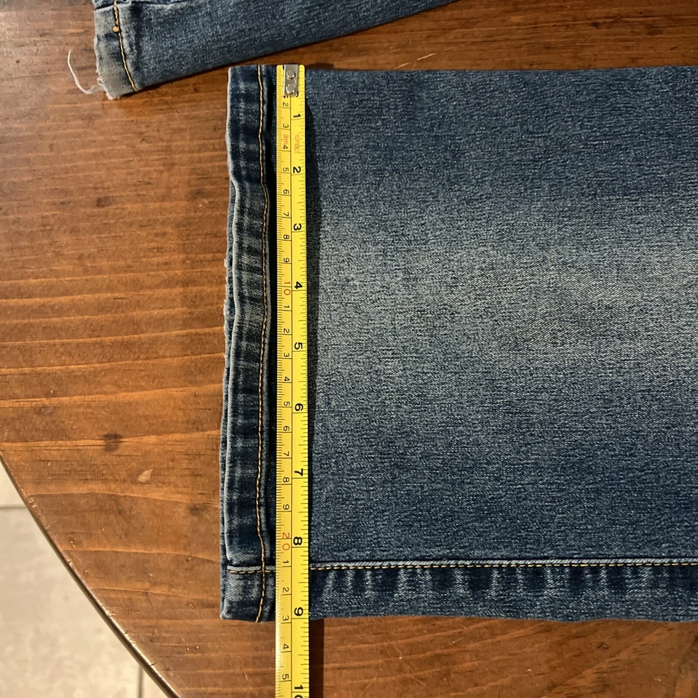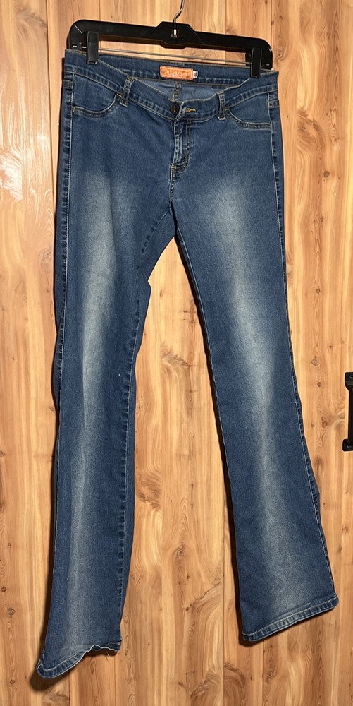 Vintage Jus D’Orange women’s Denim Jeans dark wash distressed fading Some distressed on bottom from walking Size 32” waist 34” inseam