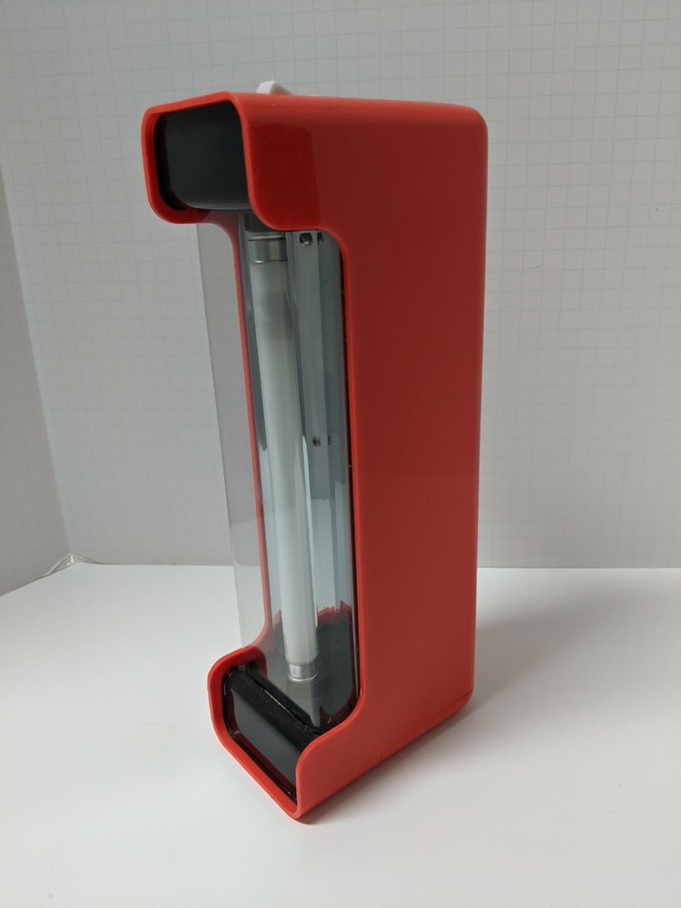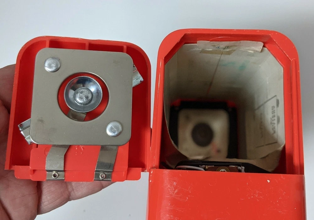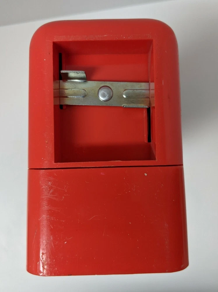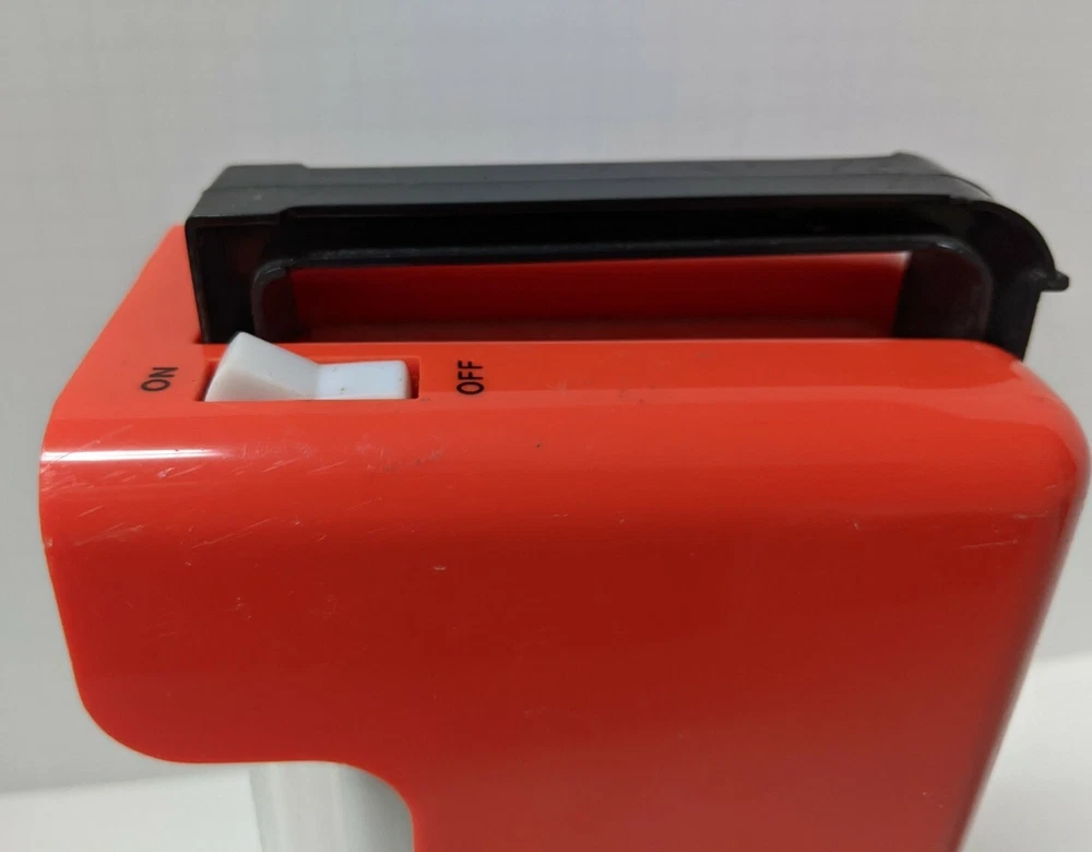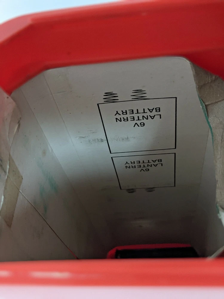 Vintage Dorcy 12v Battery Fluorescent Camping Lantern Bright Orange Mid-Century Modern Style This is a classic design from Dorcy and it is in good condition with no cracks in the plastic and the lamp still works. I can't find the original designer for this lantern but it is a classic mid-century piece. This is a collectible not a practical use lantern for actual camping. Maybe in 1972 it was but not today. The same design was also released as a Forda lantern. I tested this lantern with a 12v AC adapter but I have not tested it with batteries but the battery case is clean and never had any battery leakage.