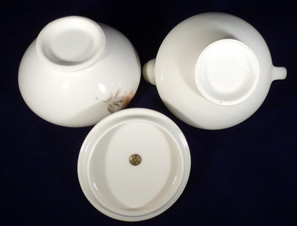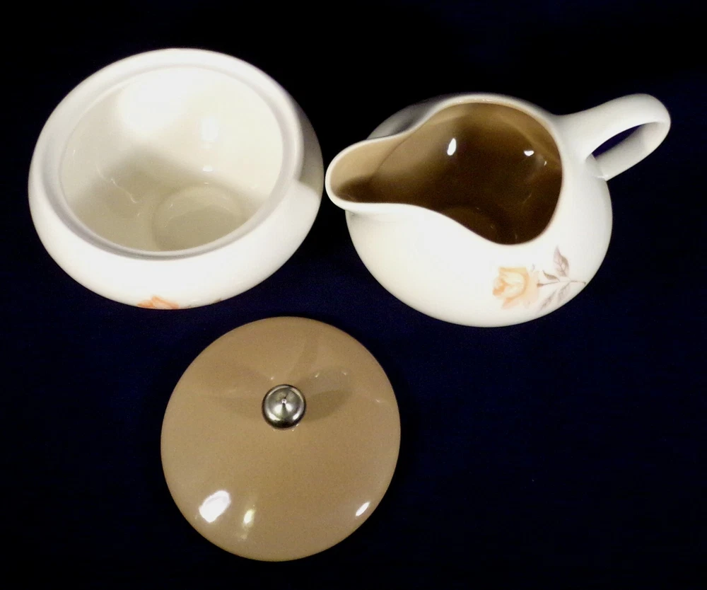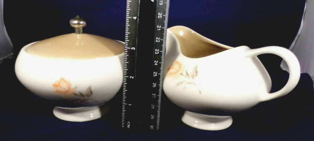 Here is a vintage creamer and sugar set which was made by Edwin Knowles and is in the Serenade pattern. The pieces are about 3 1/2 inches tall and feature peach roses on the front and back. The creamer has a taupe interior and the sugar has a taupe lid with a metal knob. Neither piece has any damage. You are buying this in AS IS vintage noted condition. Any reflections are from my lights. All breakable items are well wrapped in bubble wrap for shipment. Please check out my e-Bay Store for more great items ! Please read description closely and contact me through eBay if you have questions before you bid or buy as I want all buyers of my items to have a positive experience! I try and list items as accurately as possible. It is important that, unless otherwise stated, items are vintage or used and have normal wear and tear that comes with age. Payment for auction items expected within 5 days. Shipping: I can only ship by USPS. Included in shipping are my costs for packing materials such as box and bubble wrap. I ship within 5 business days of receiving your payment. COMBINED SHIPPING IS AVAILABLE ON MOST ITEMS. Please wait for an invoice before paying on more than one item--so that shipping costs can be recalculated. FEEDBACK: I give feedback for those who leave me feedback first. Please refrain from giving a negative and contact me first. I value my star ratings so contact me if a problem before lowering my score. Refunds & Returns: No Returns-- but if the error was mine I will make it right!