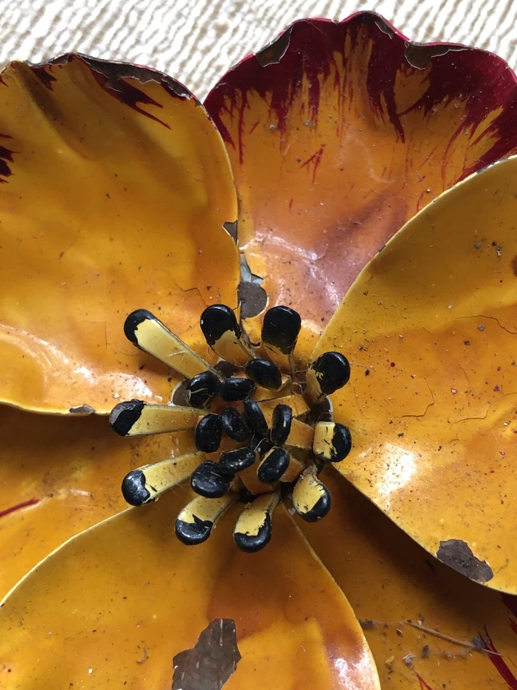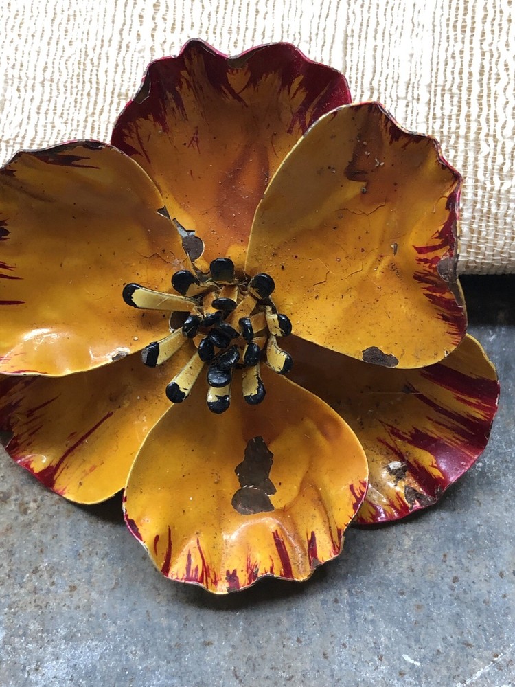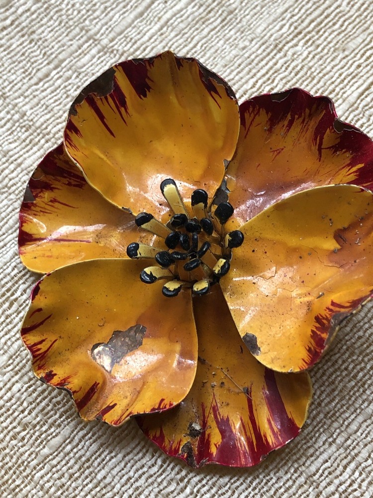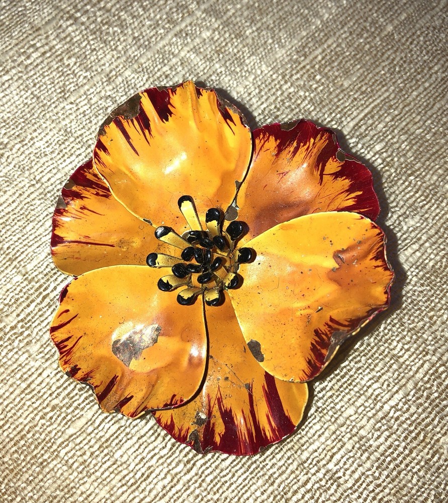 Vintage Enamel Orange Flower Brooch 3" in diameter Some loss of enamel finish- please see pictures Estate Jewelry Mid Century Jewelry From a Mississippi Estate