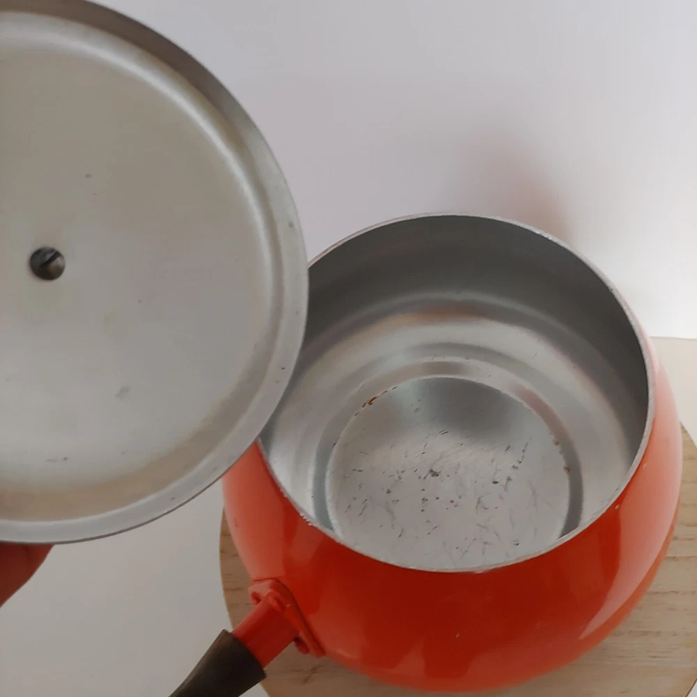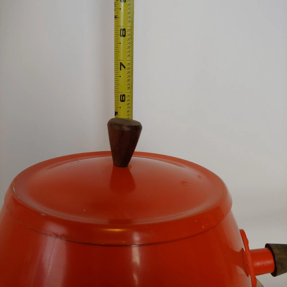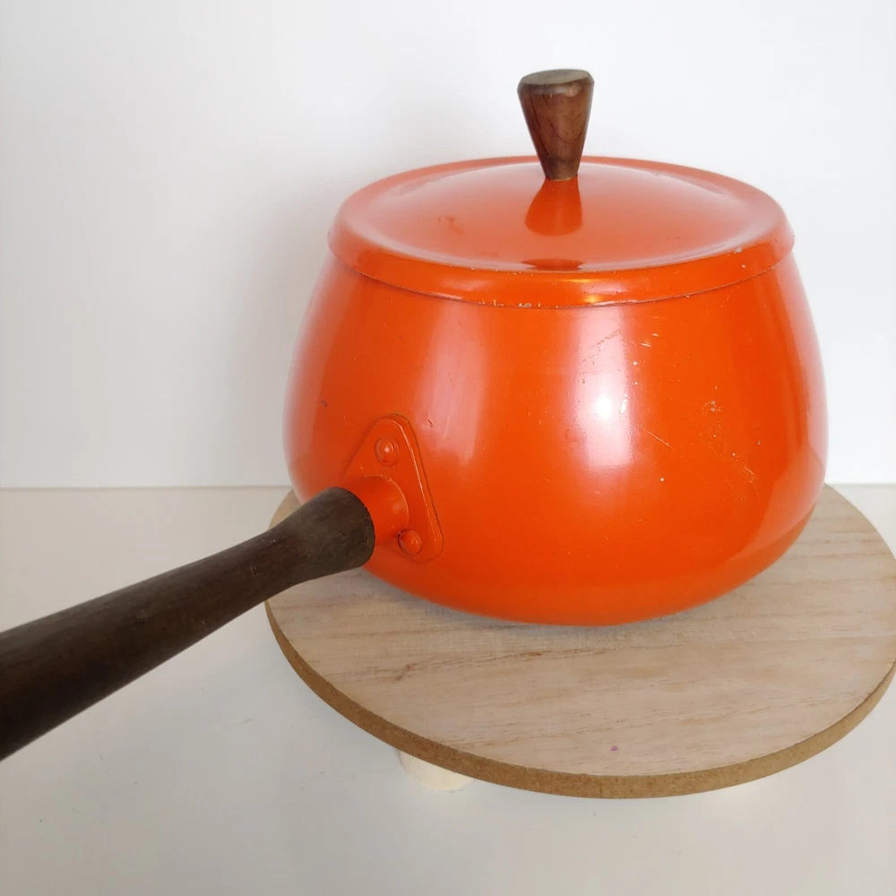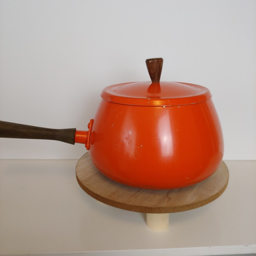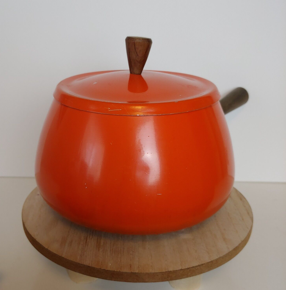 Vintage Fondue Pot Orange Mid Century Wooden Handle MCM PreOwned - Please ask any questions before purchasing SHIPPED WITH TRACKING WITHIN 1 BUSINESS DAY OF CLEARED PAYMENT shows surface and interior scratches, please look at all photos *** Thank you for shopping at Yesterday's Love Affair. All sales are Final. Payment is due at time of purchase. If you are not able to pay within 3 days, please contact me for further arrangements, otherwise sale will be cancelled and the item will be relisted.
