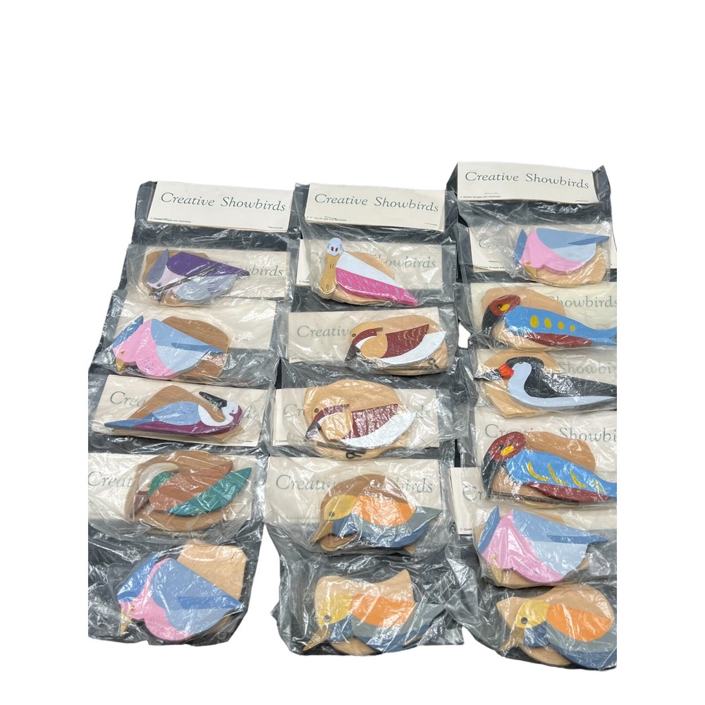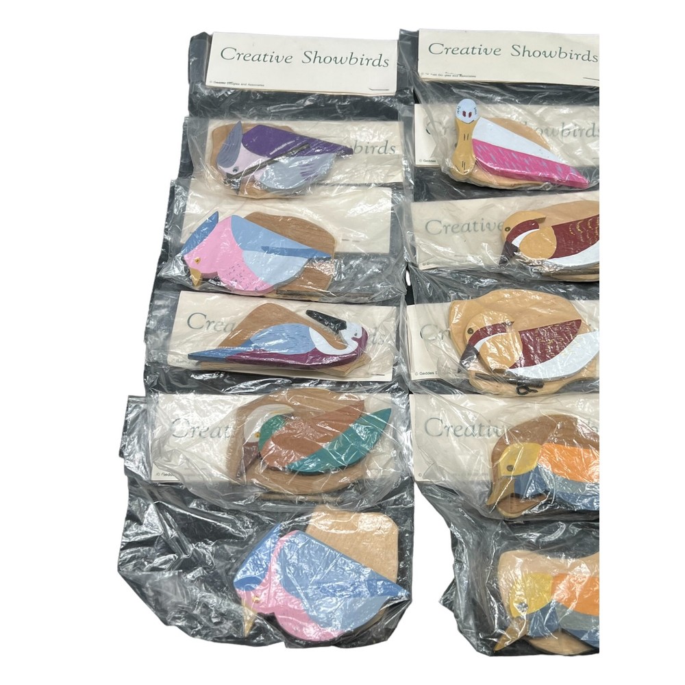 1000005010 Vintage Geddes Douglas & Associates Creative Showbirds Craft Kits Set of 16 This set is brand new in the original packaging. Each bird come with a screw loop, dowl, and stand. There are some duplicates in the set. Size: various, most are approximately 2โ x 4โ Material: wood Made in: USA We do our best to ensure that descriptions are accurate, and items are functional before listing, but accidents happen. If you find that what you ordered is not what you were expecting, let us know. Most items ship within 1 business day Please let us know if you have any questions.
